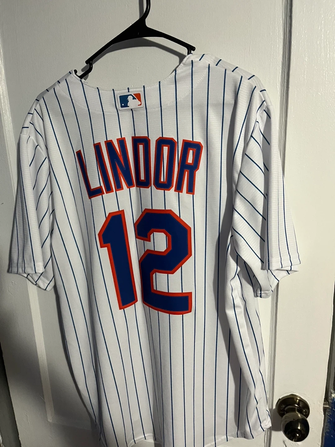 Selling a Nike Lindor 12 Mets baseball jersey in excellent condition! It's a men's size XL. The jersey is white with blue pinstripes and features Lindor's name and number on the back. Suggested retail price was $135