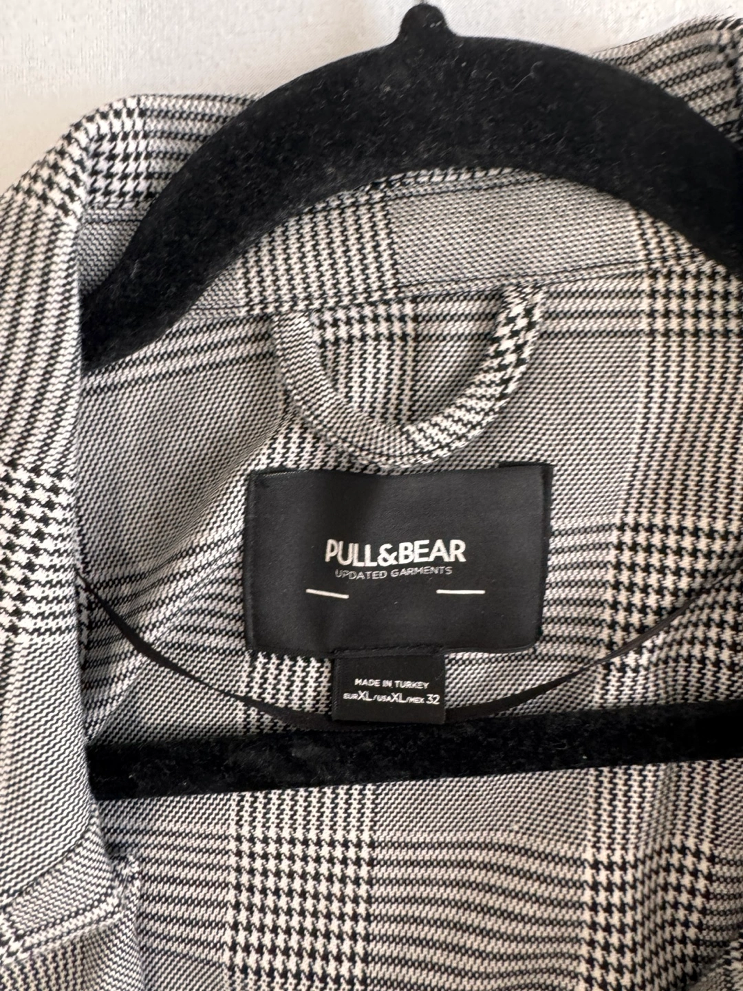 Selling a Pull&Bear blazer in a stylish plaid pattern! It's a size XL and made of a comfortable material. This blazer is perfect for adding a touch of sophistication to any outfit. It's in great condition and ready for a new home