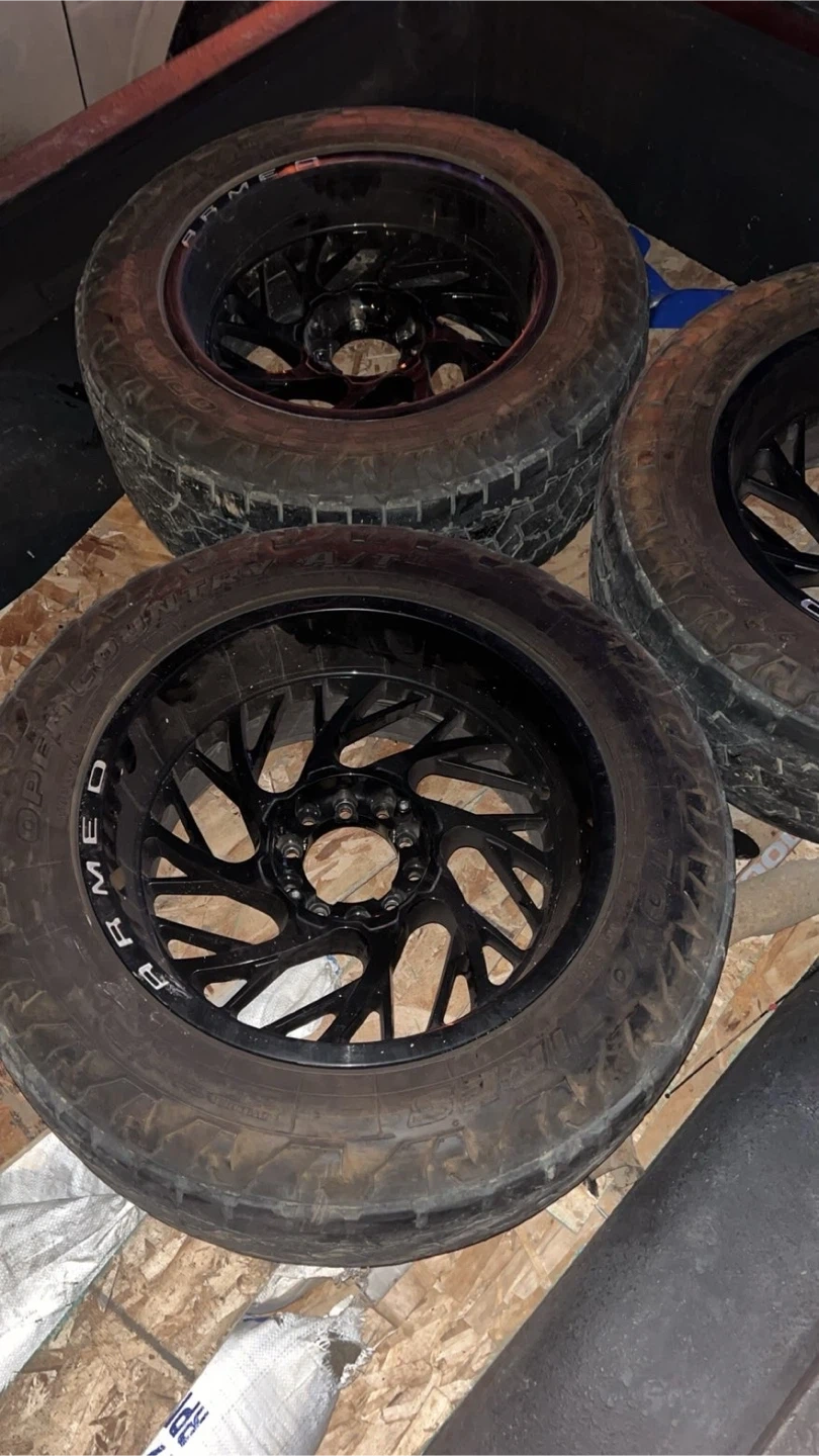 Selling a set of four ARMED Off Road wheels with TOYO Open Country A/T tires. These are aggressive all-terrain tires. Great for off-roading adventures!