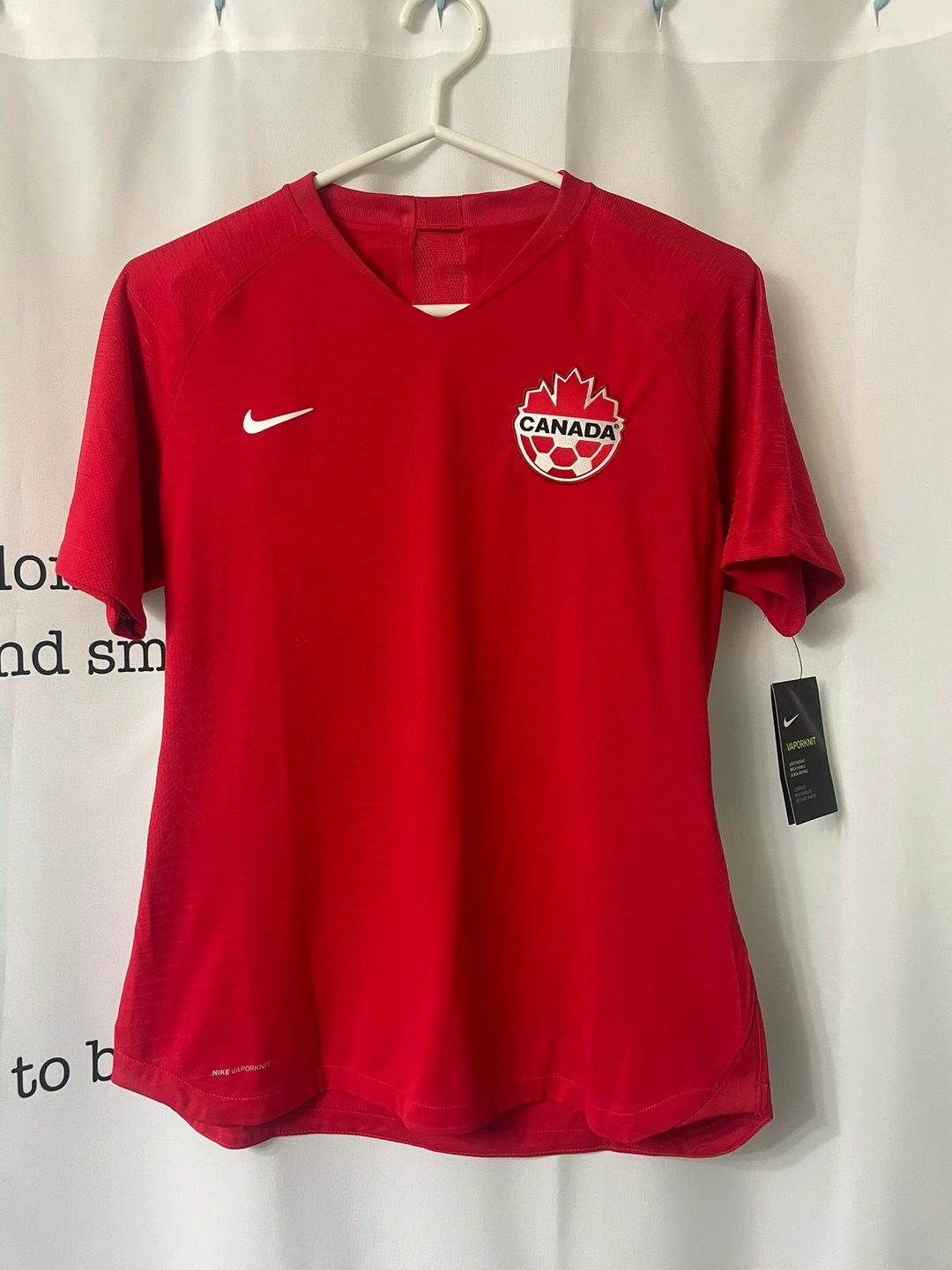 Brand new with tag, official Nike Canada World Cup 2019 Soccer jersey. Women’s medium. Retails new for $200. See all the pics for closeups and details. Cash preferred.