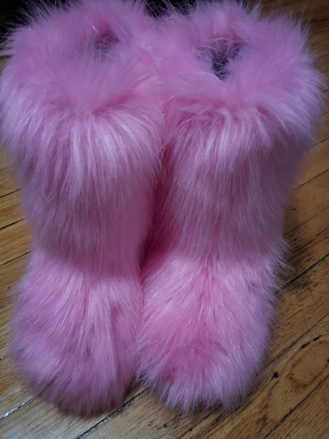 Cozy pink faux fur boots for keeping your feet warm! Features a durable sole for indoor and outdoor wear. Made in China.
