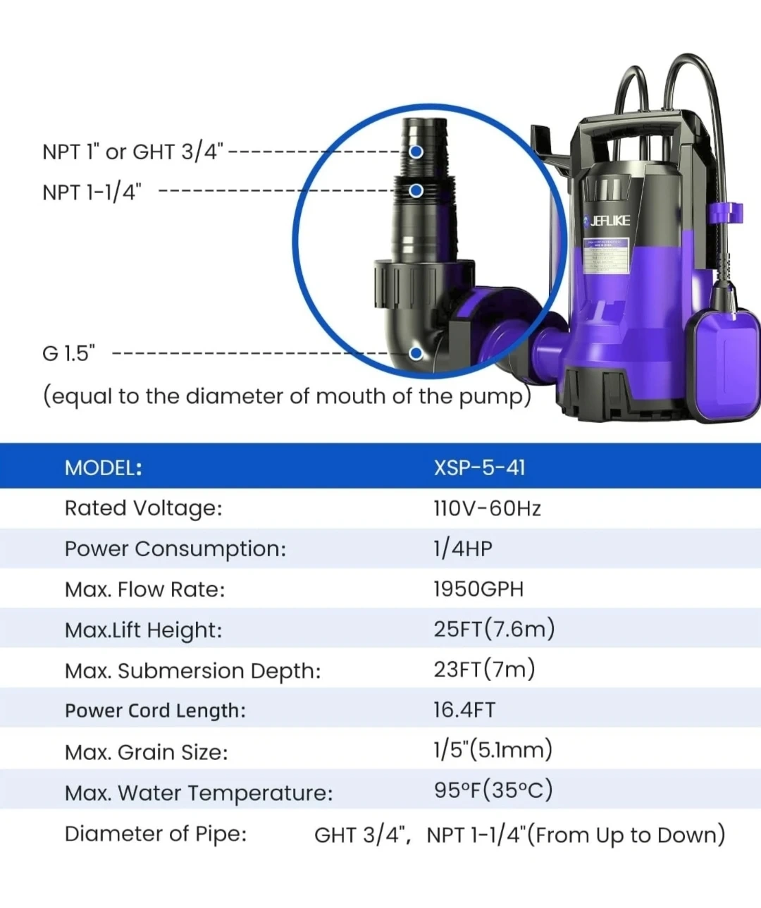 π§ Flow Rate: Up to 1950 GPH
