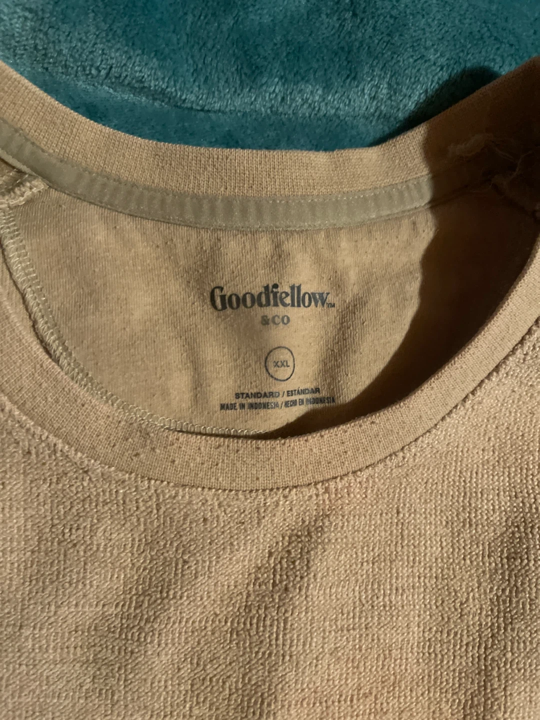 This is a Goodfellow & Co. long sleeve shirt in size XXL. It's a comfortable, neutral-coloured top made for everyday wear. Its simple design makes it a versatile addition to any wardrobe.