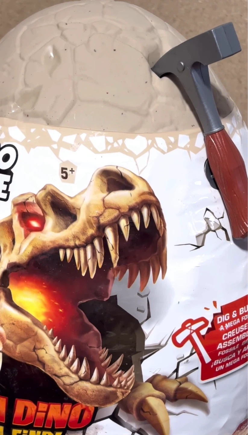 Dig and build a mega dinosaur fossil! It's an exciting excavation kit with a digging tool included. Includes sand-like compound and a dinosaur skeleton to assemble.