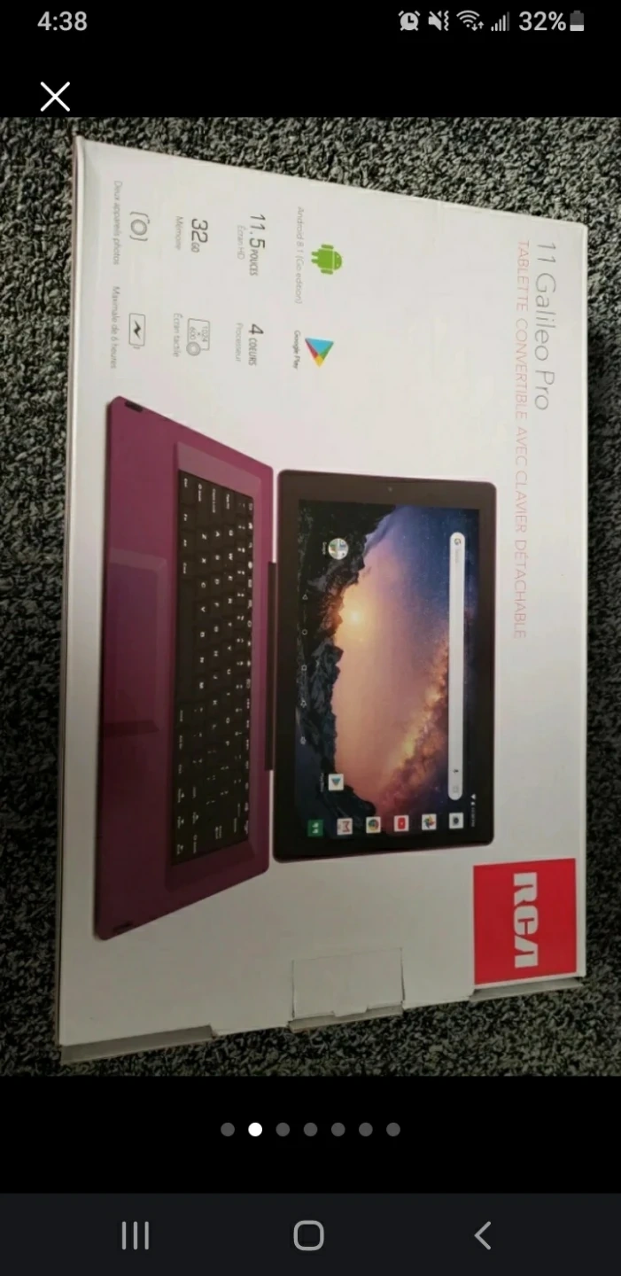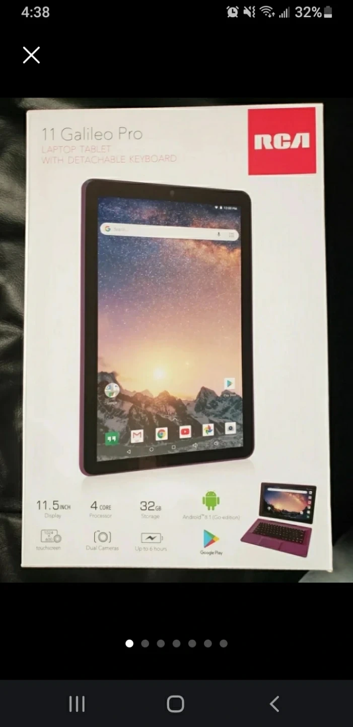 This RCA 11 Galileo Pro is a laptop tablet with a detachable keyboard. It features an 11.5-inch multi-touch display and 32GB storage. The battery life isn't the greatest and the display is laggy when using apps like Facebook or YouTube.