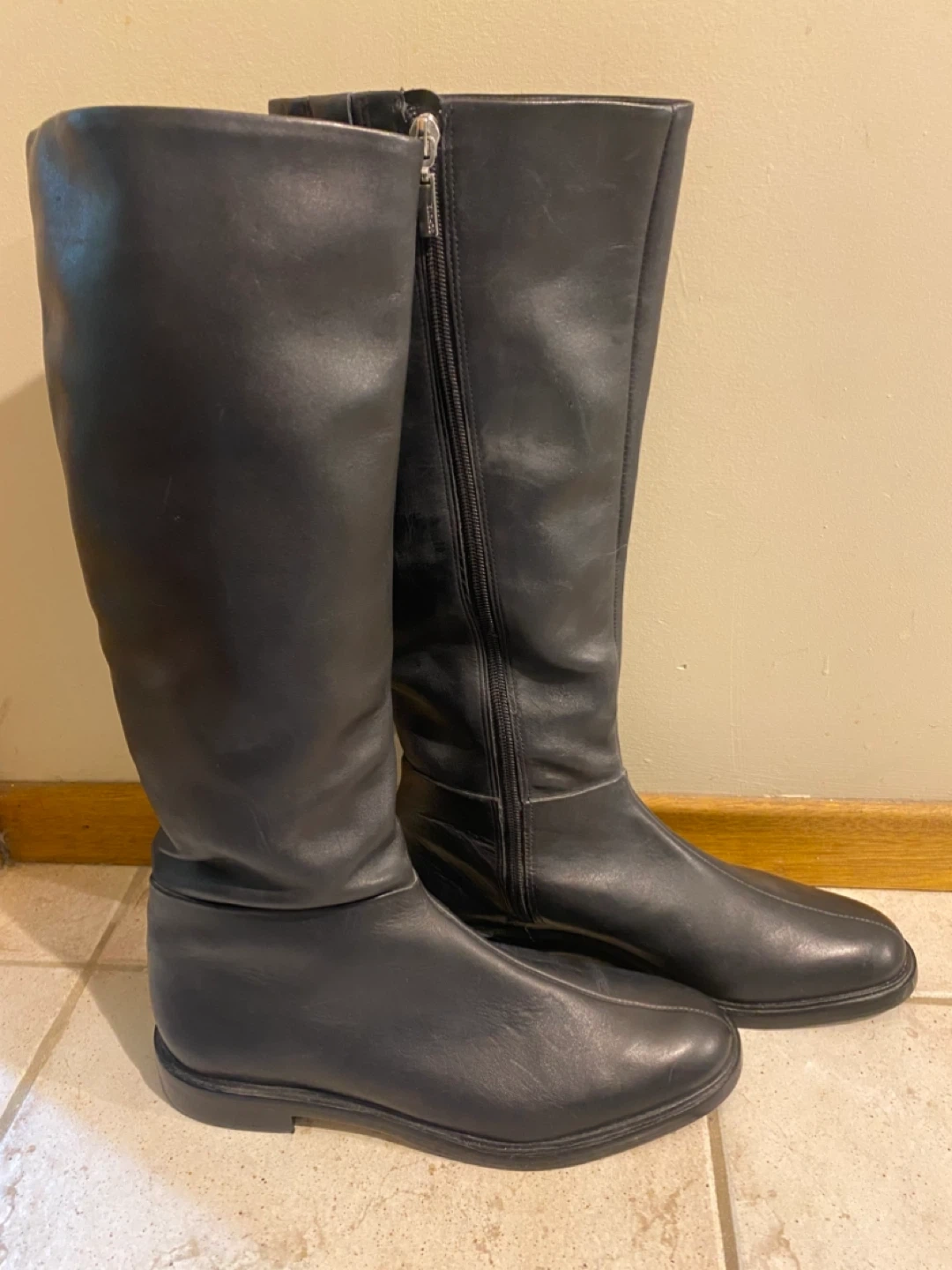 Selling a pair of Schutz knee-high leather boots in black. They are a size 8. Made in Brazil with a leather sole. These boots are in great condition and would be a stylish addition to your wardrobe!