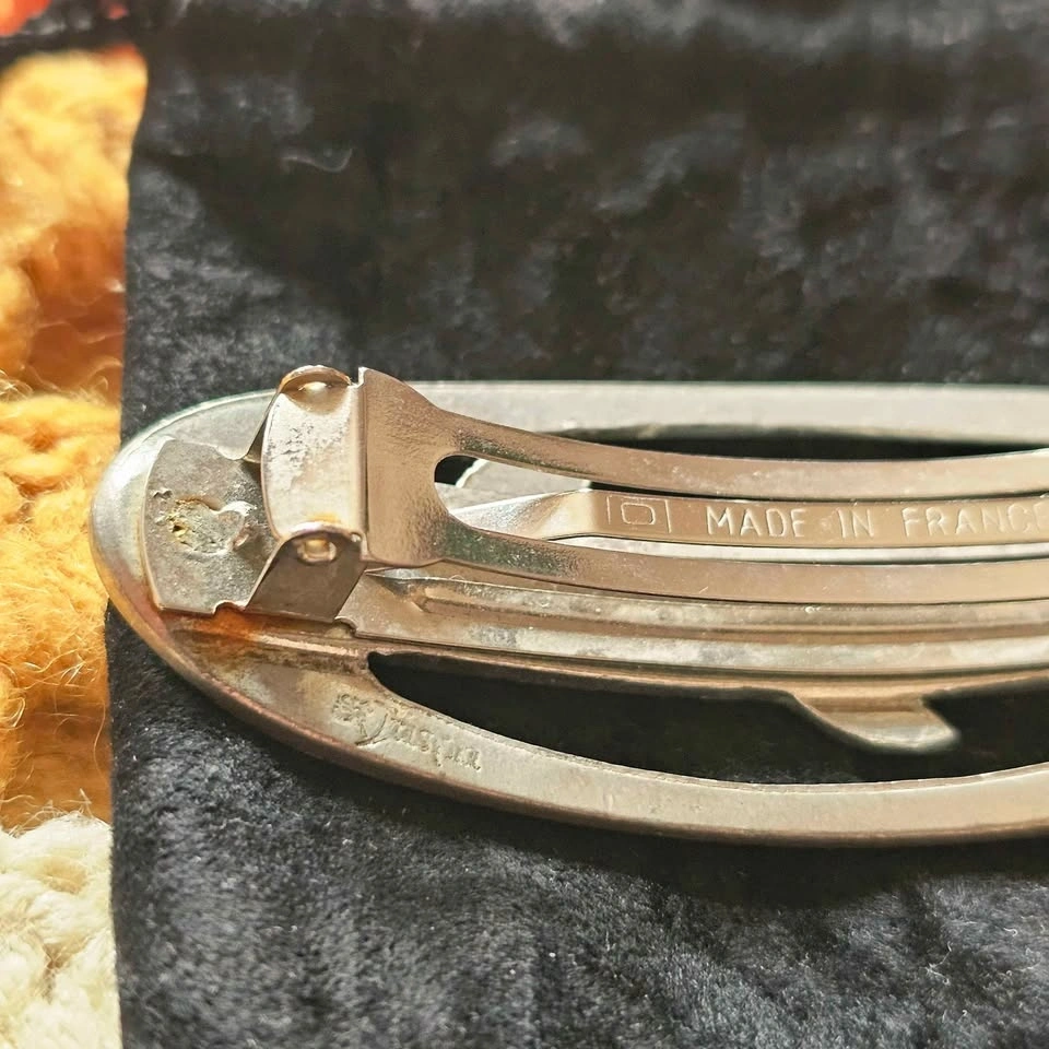 Hairclip is in very good vintage condition, with light signs of age. It has a heavy-duty clip back that still has perfect tension. It measures about 9cm long x 3.5cm wide.