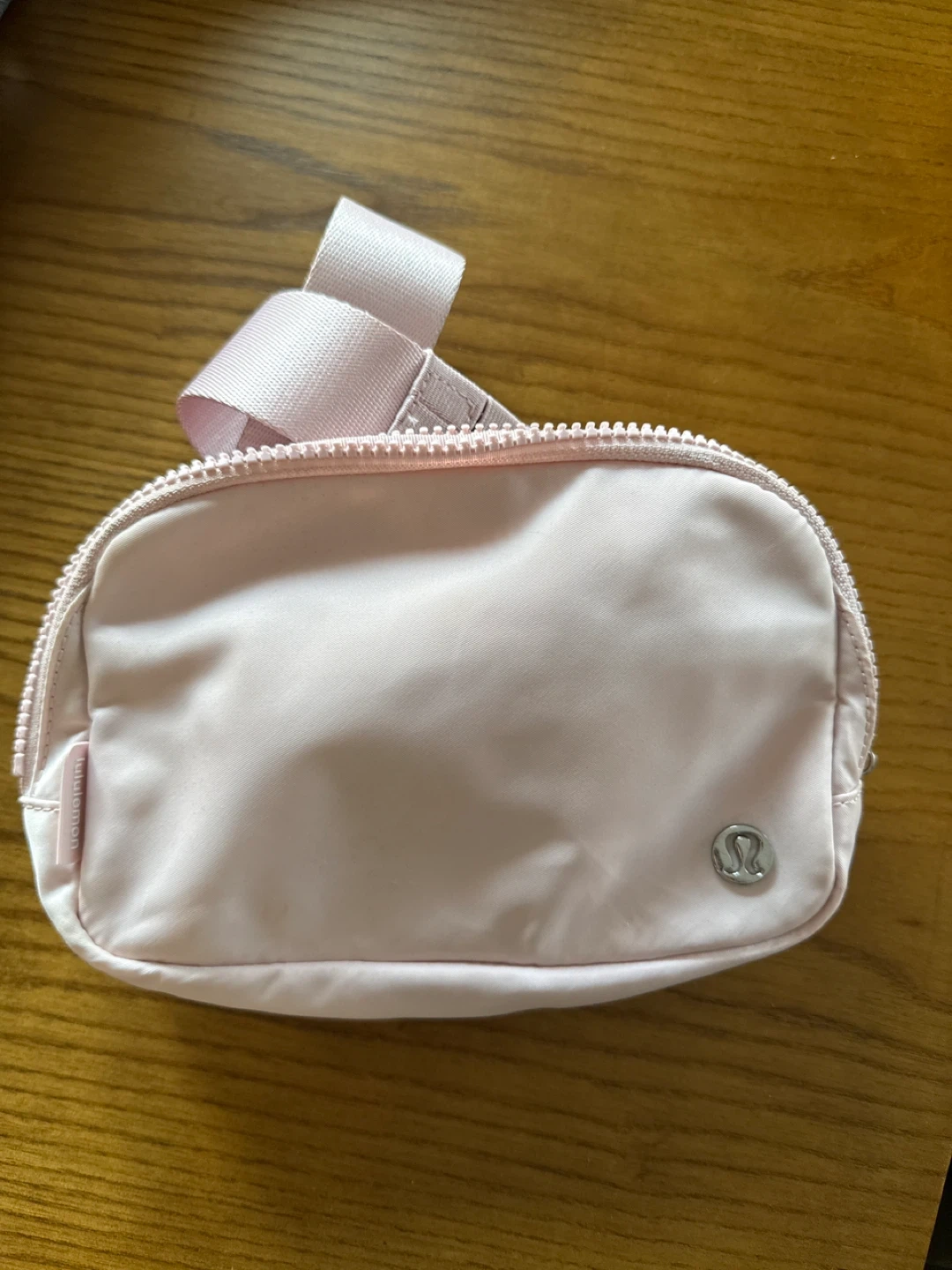 This Lululemon Everywhere Belt Bag is a pale pink colour. It's perfect for carrying your essentials on the go. A great everyday bag!
