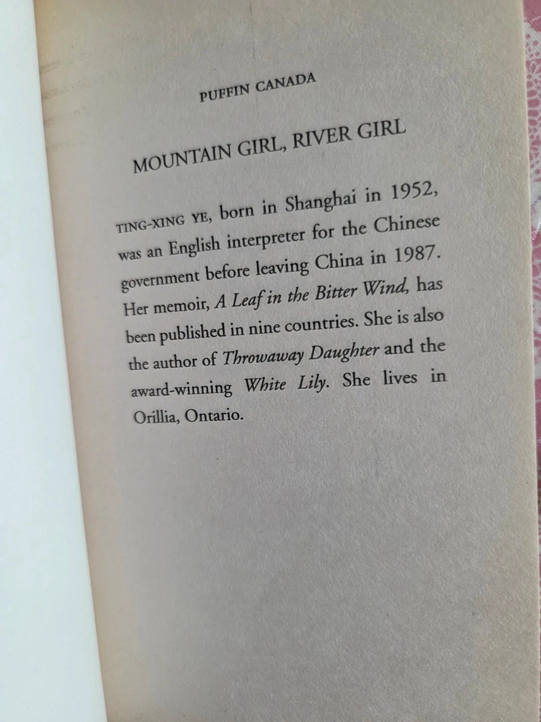 This is "Mountain Girl, River Girl" by Ting-xing Ye. It's a novel nominated for the White Pine Award. Ages 13 and up.
