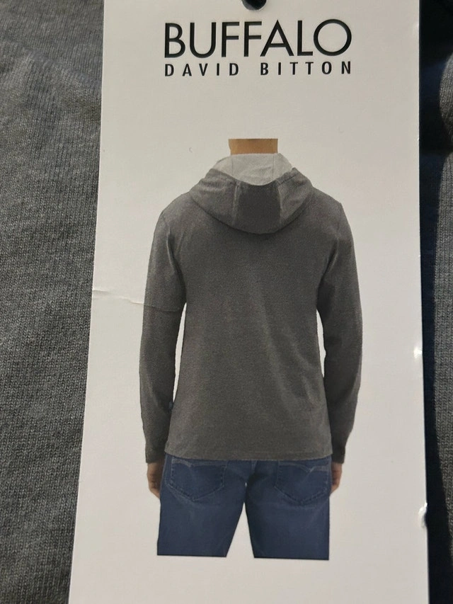 Brand new Buffalo David Bitton men's soft hoodie. Relaxed fit, longsleeve with chest logo embroidery and contrast hood lining. Fabric content: 70% cotton, 25% polyester, 5% elastane. Care instructions: Machine wash cold gentle cycle, do not bleach, tumble dry gentle cycle on low temperature, iron at low temperature if necessary, do not dry clean. Let me know if you're interested!