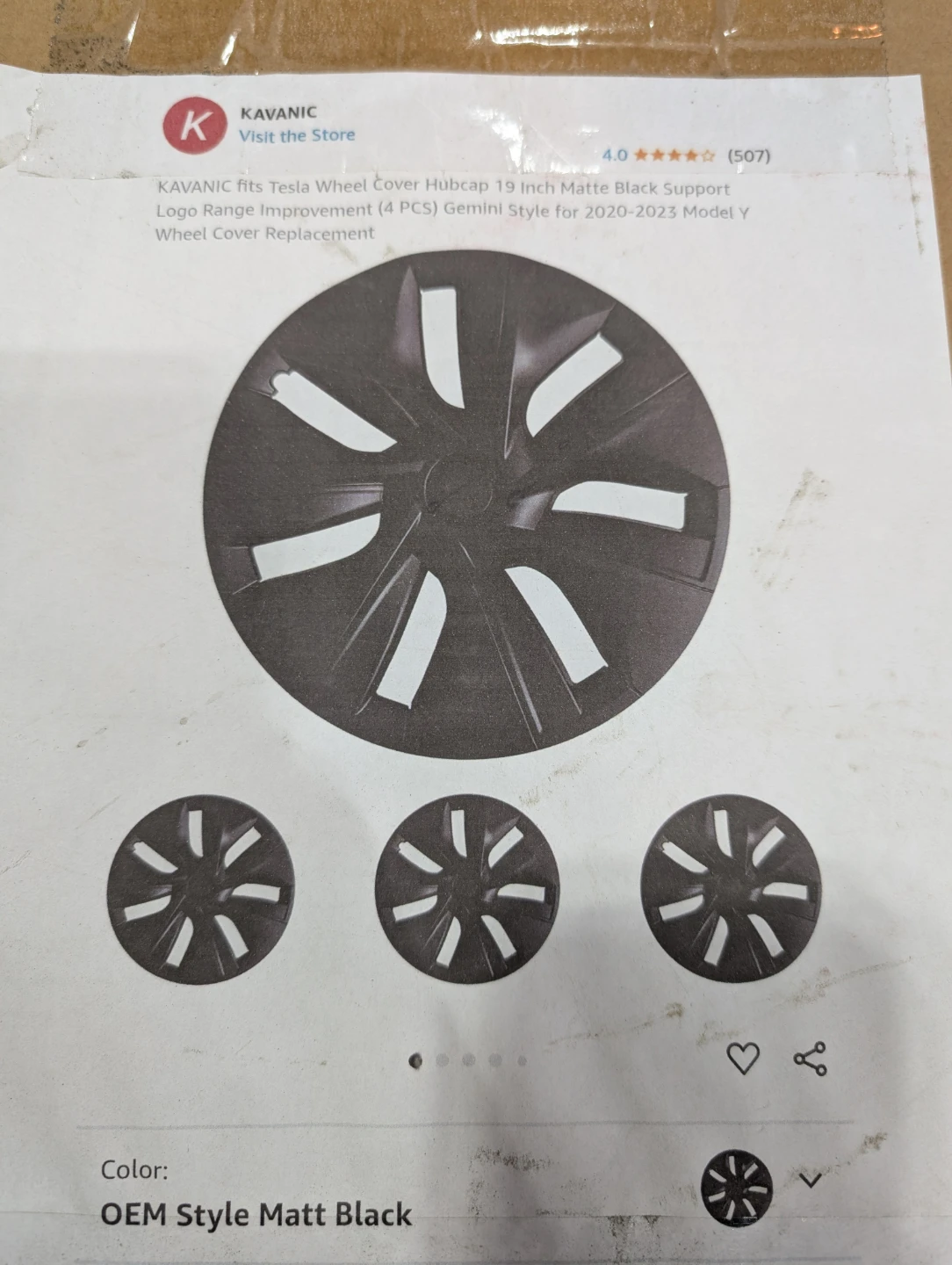 (4)-19 Inch Brand New Tesla Model Y Matte Black Wheel cover hubcaps