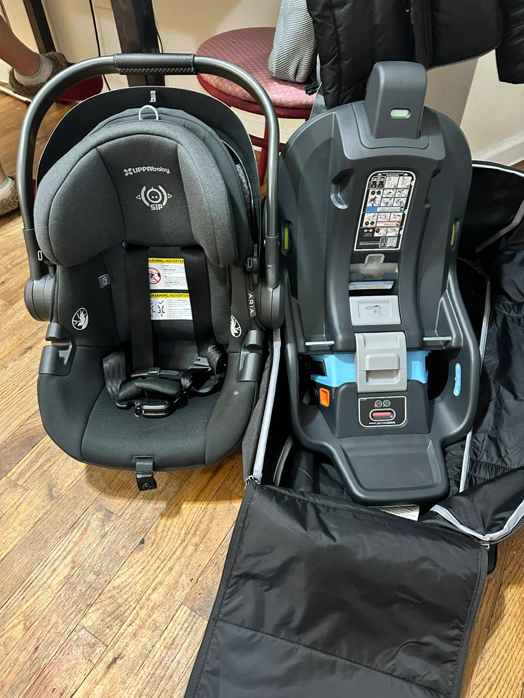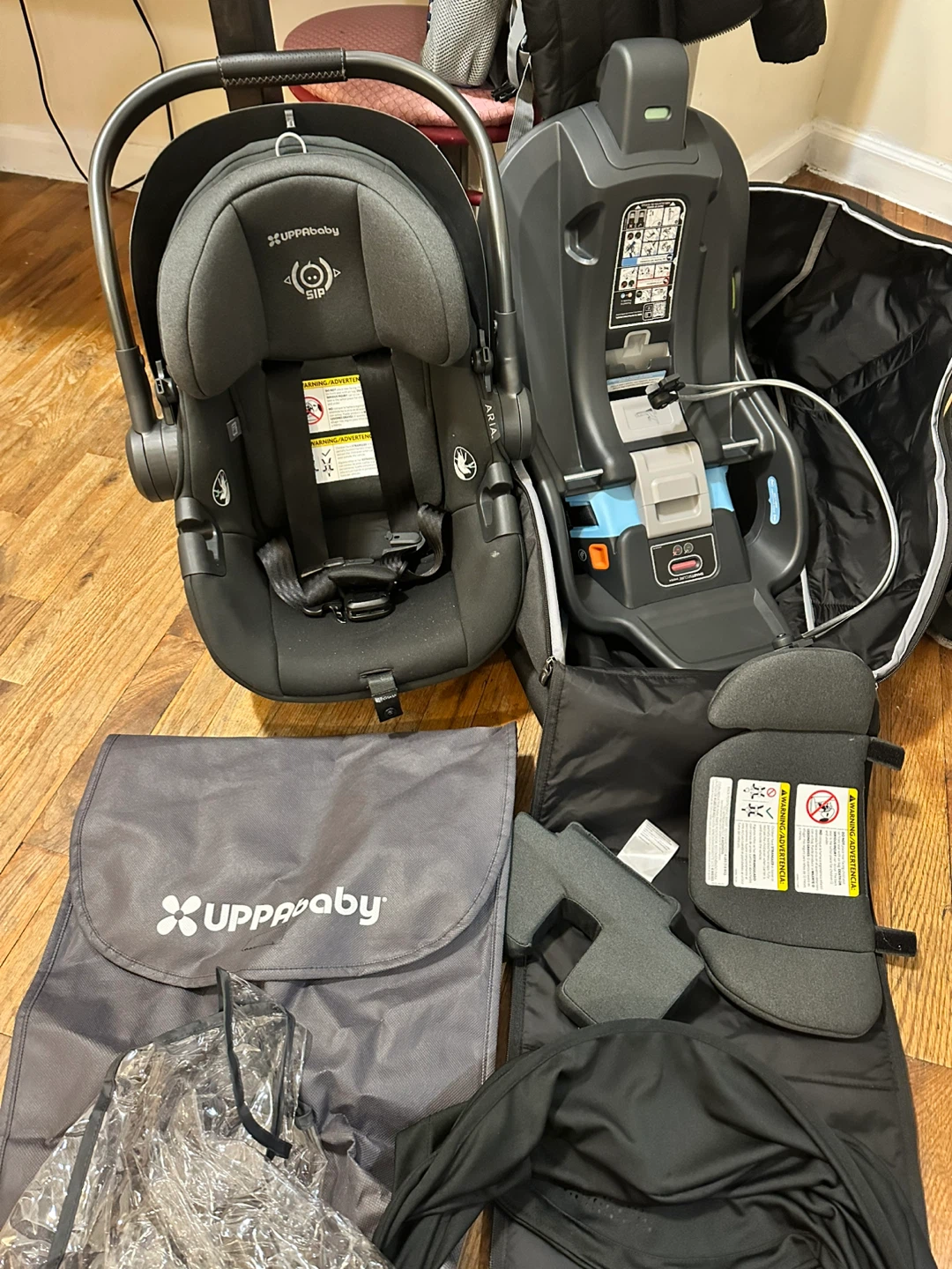 Includes: base, seat, rain protector, travel bag, newborn pad.