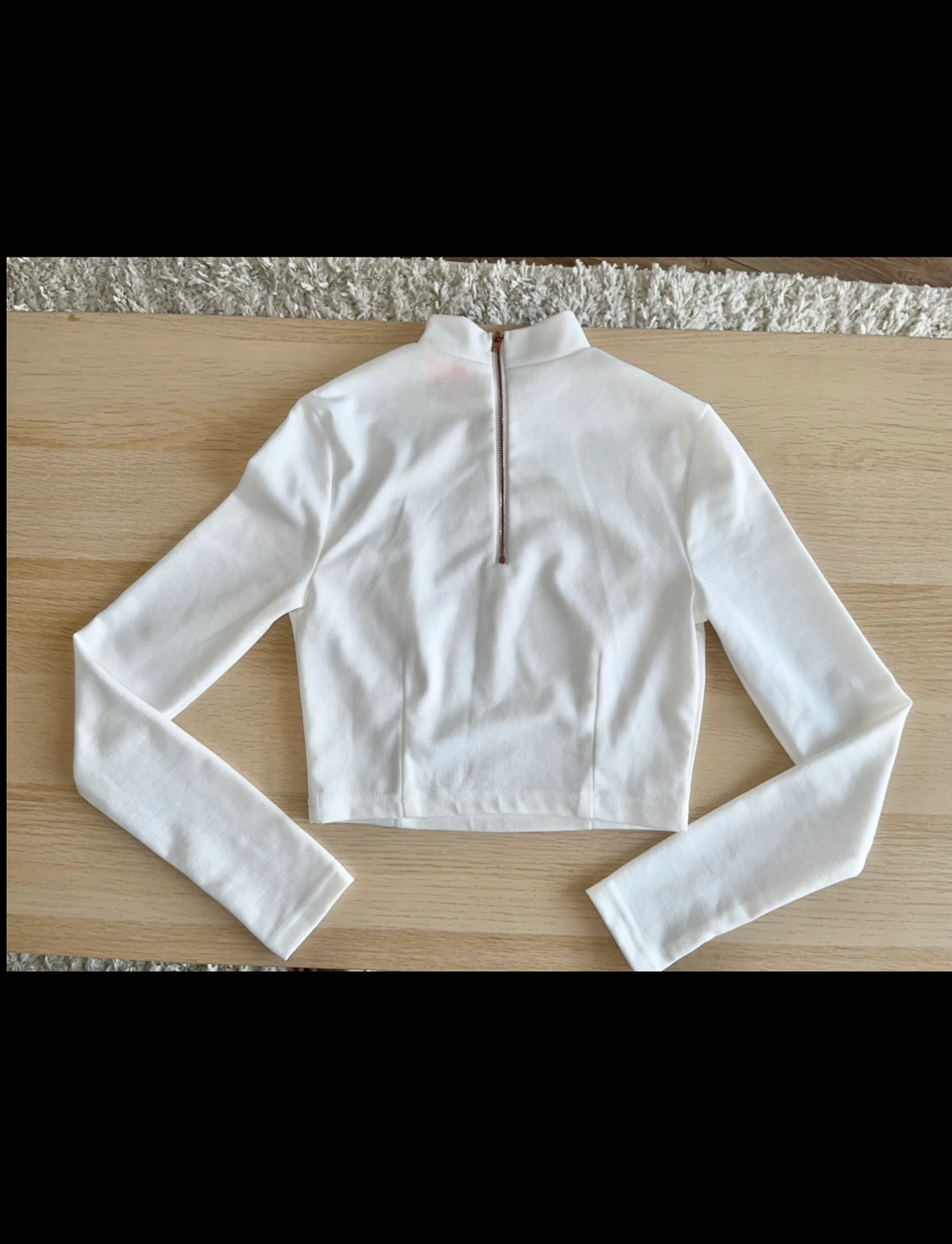 white cropped turtleneck from Lulu’s with zipper up the back