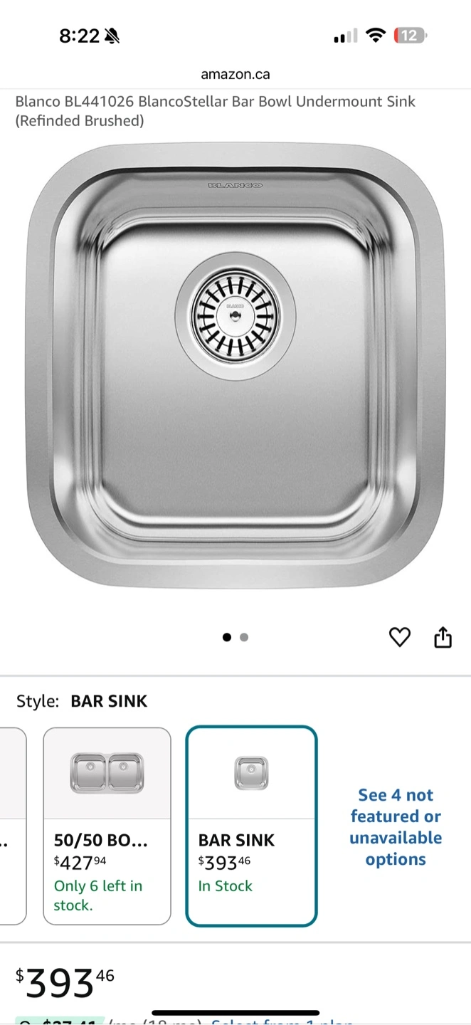 Selling a brand new Blanco Stellar bar bowl undermount sink! Still in the original box. This refined brushed stainless steel sink is perfect for a bar area or small kitchen space. Retails for $393.46 + Tax