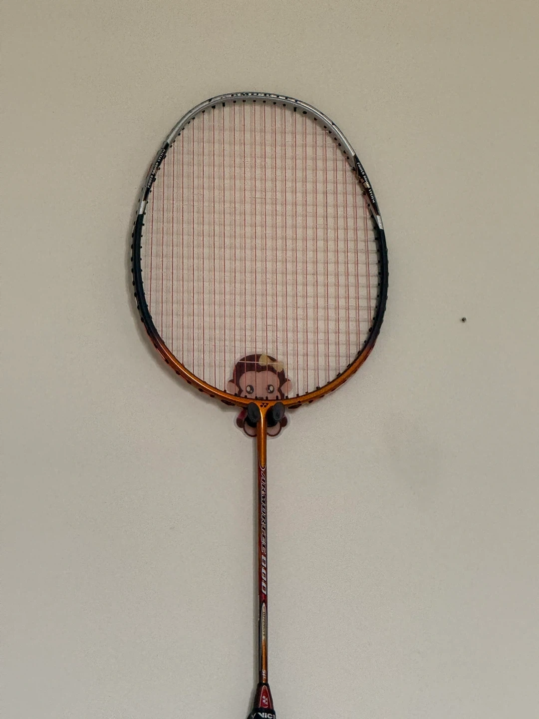 yonex at 800o badminton racket. It's an adult-sized racket with orange and silver accents. Great for recreational players!