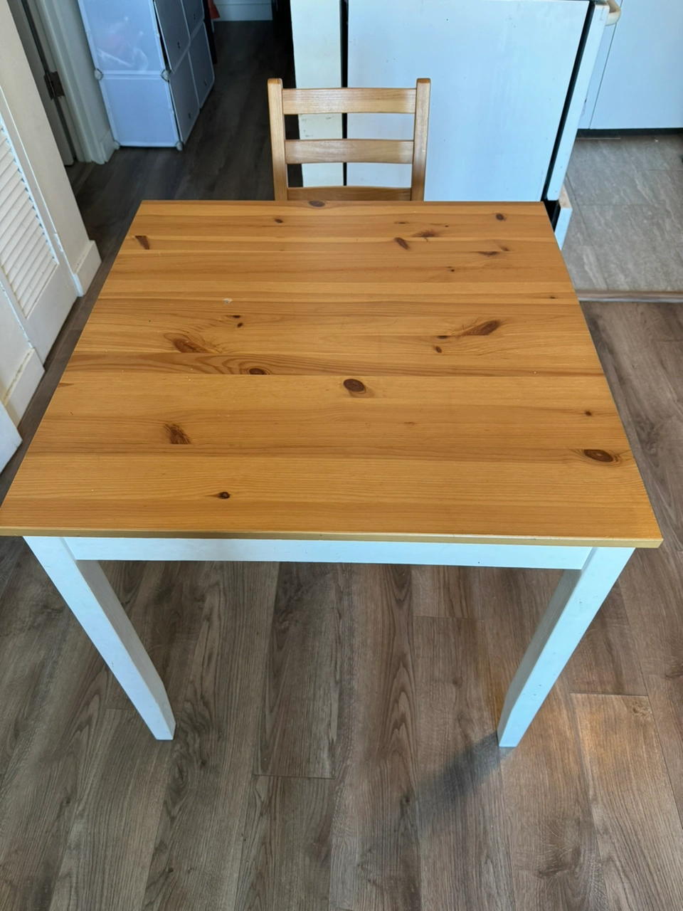 IKEA dining table and single chair. Well cared for set by single owner. Minimal scratches and tear(included in photo).