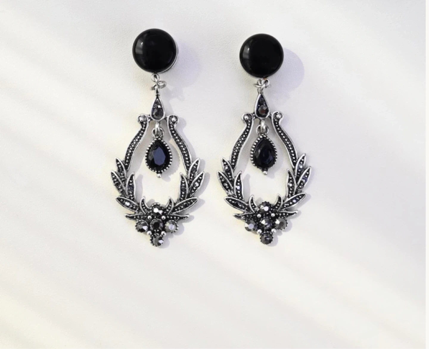 Vintage Style PDG Dangle Earrings with Black onyx Stones