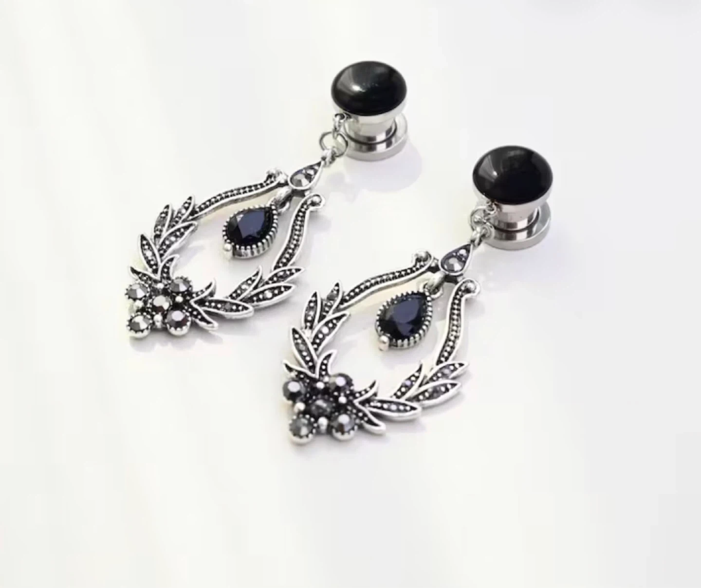 Crystal Victoria Party Plugs Gauges /8g ,6g ,4g ,2g ,0g ,00g ,7/16, 1/2, 9/16 , 5/8 ,11/16 ,3/4 ,1 inch Crystal Dangle Plugs Wedding Gauges
