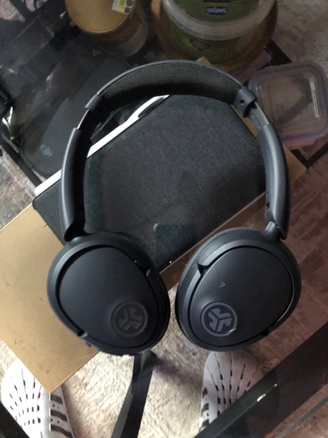 Wireless over-ear headphones. Black colour. Good for listening to music or podcasts.