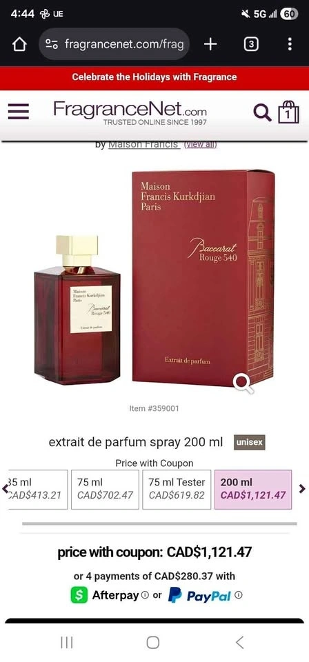 Buy & SellBacarat rouge 540Bacarat rouge 540$350Open box, only sprayed a couple of times. 200ml bacarat rouge 540WHERE TO MEETCheck LocationView MapSELLERmakDowntown434 reviews0 chats·0 favorites·22 viewsSEND CHAT TO SELLERHi mak! I’m interested in your listing.Hi mak! I’m interested in your listing.Get the Karrot app to chatSign In to chat