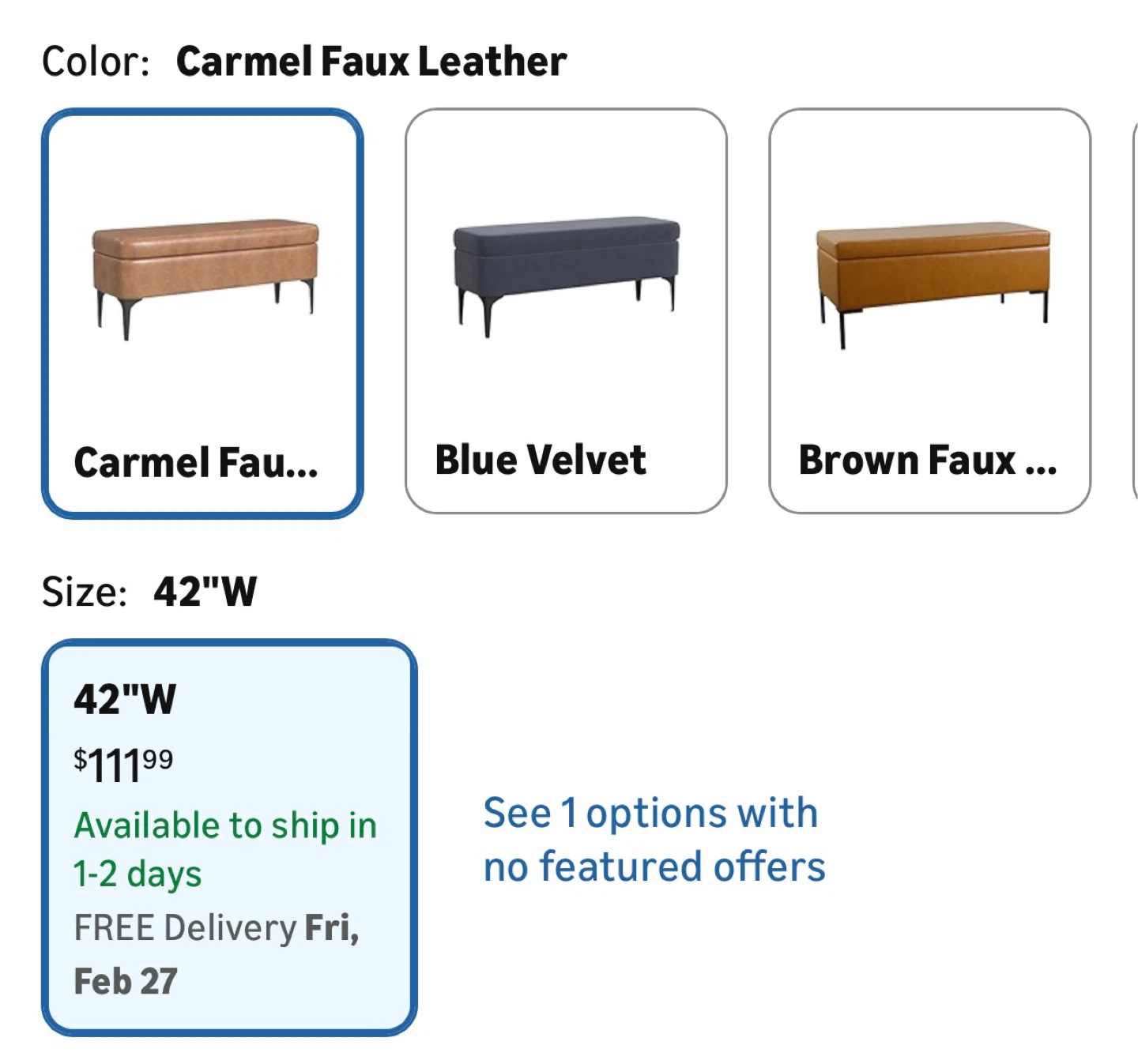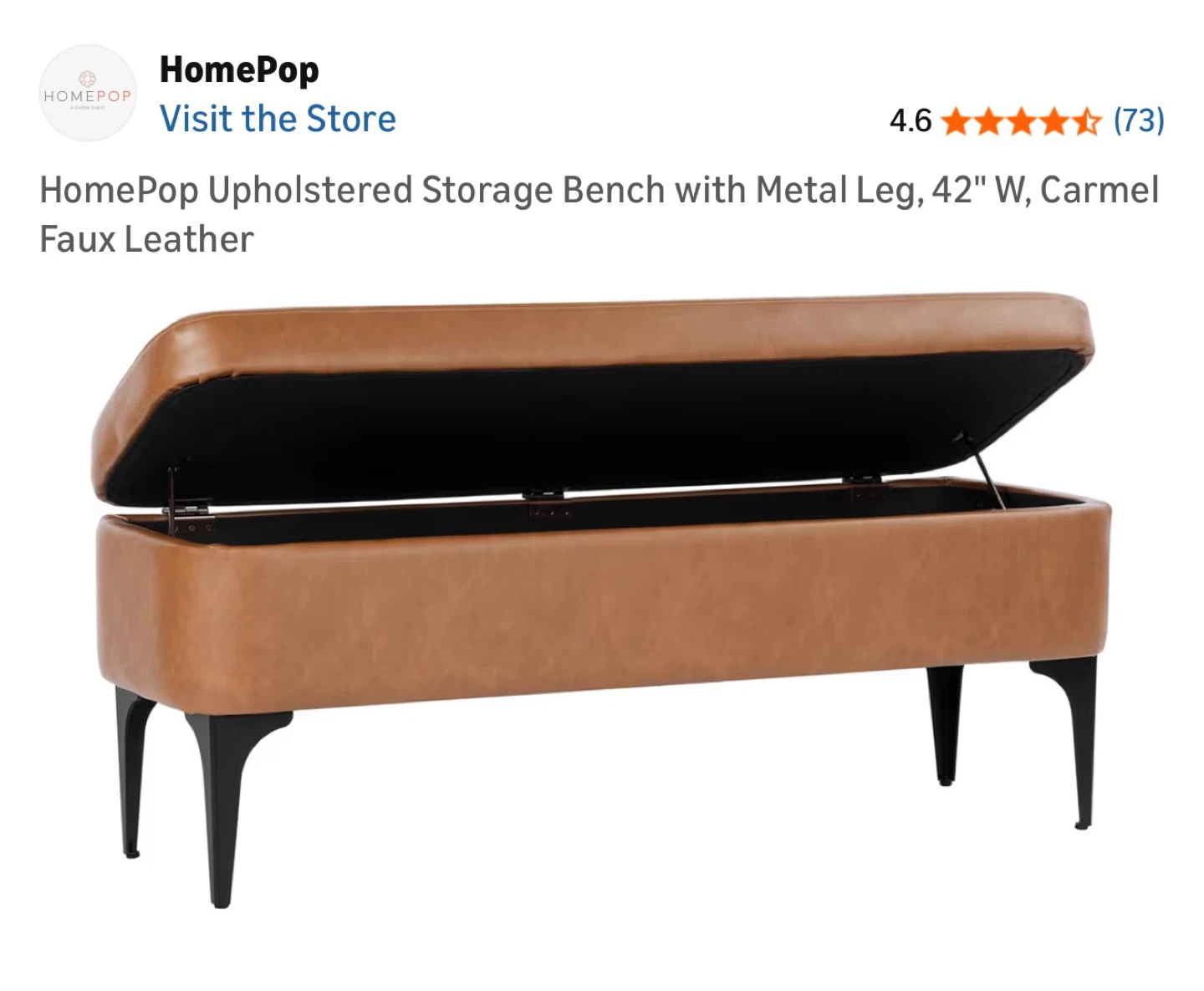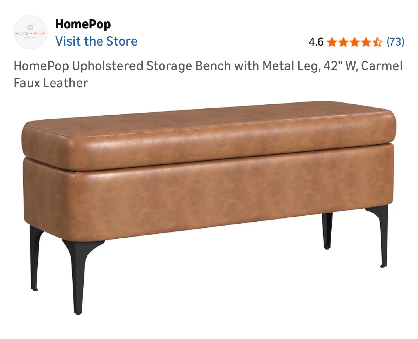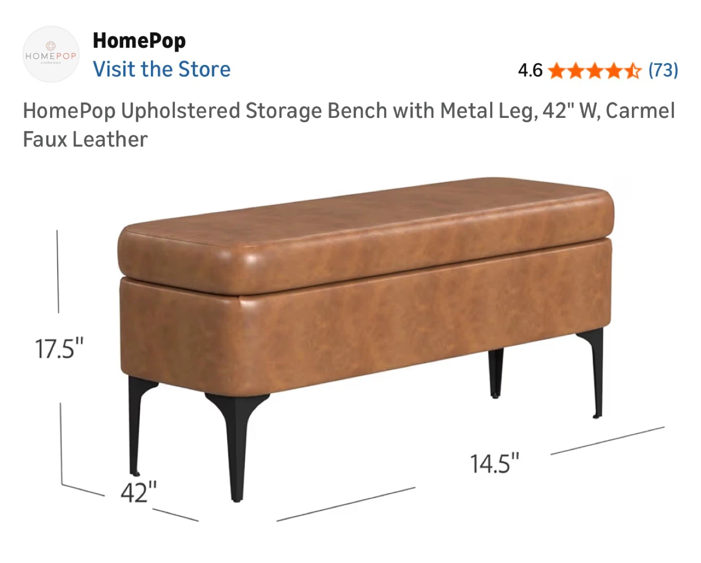 1 / 101 / 10Buy & SellHomePop Upholstered Storage Bench Faux LeatherHomePop Upholstered Storage Bench Faux Leather$81HomePop upholstered storage bench. Carmel faux leather upholstery. Metal legs. It's 42" W x 17.5" H x 14.5" D. Plenty of storage space inside!ConditionNewWHERE TO MEETCheck LocationView MapSELLERverifiedKarla GRomeoville771 review0 chats·1 favorites·34 viewsSEND CHAT TO SELLERHi Karla G! I’m interested in your listing.Hi Karla G! I’m interested in your listing.Get the Karrot app to chatSign In to chat