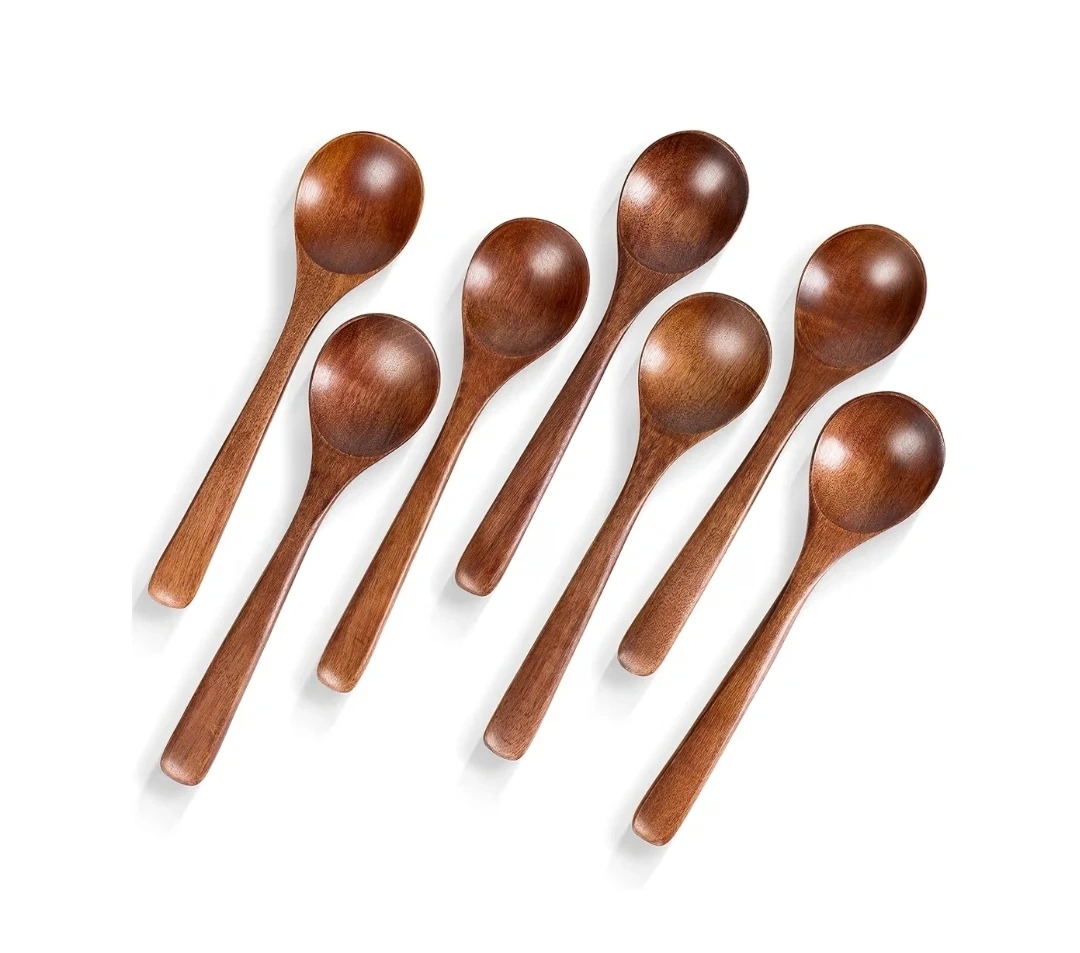 7PC Natural Hardwood Wooden Spoon Set | 7" Tea Coffee Honey
