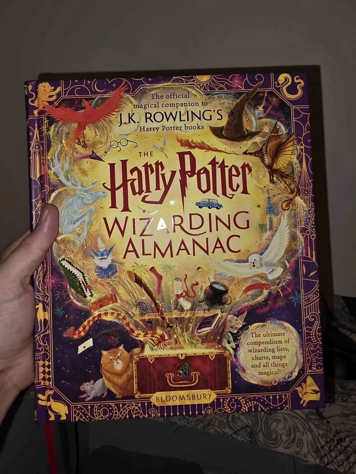 First Edition of the Wizarding Almanac in pristine condition. It contains everything from Harry Potter family history to all the wizarding world history, going back to the first wizards. Includes maps, forest maps, a detailed Hogwarts map, and information on all the monsters and creatures in the Harry Potter universe, and so much more.