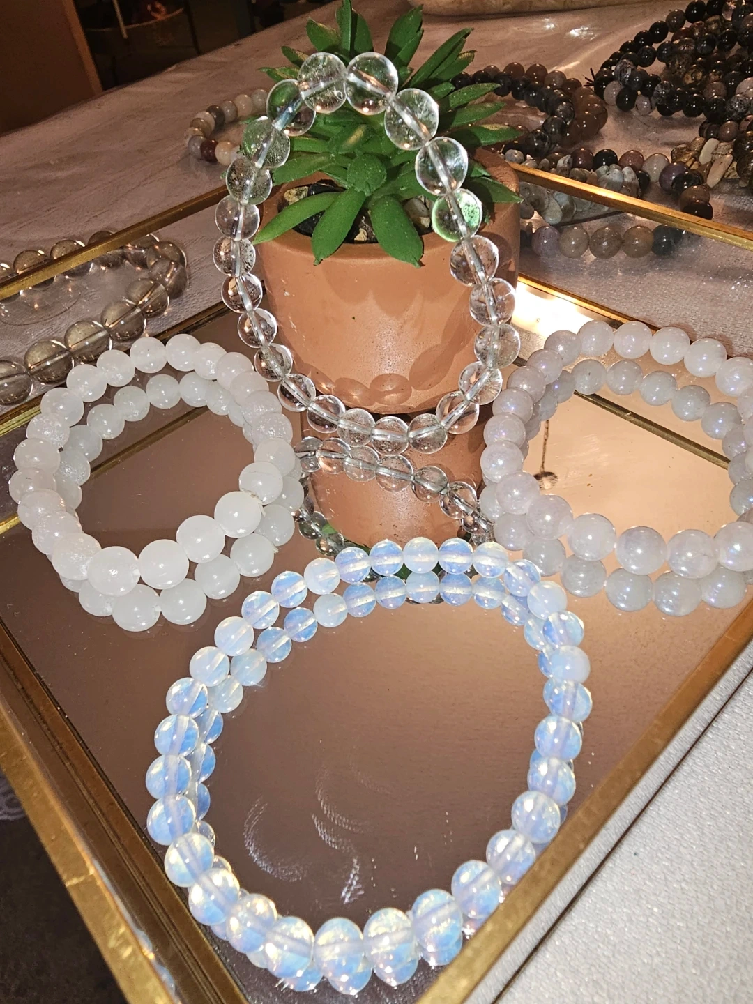Clear quartz, white jade ,moonstone &opallite bracelets