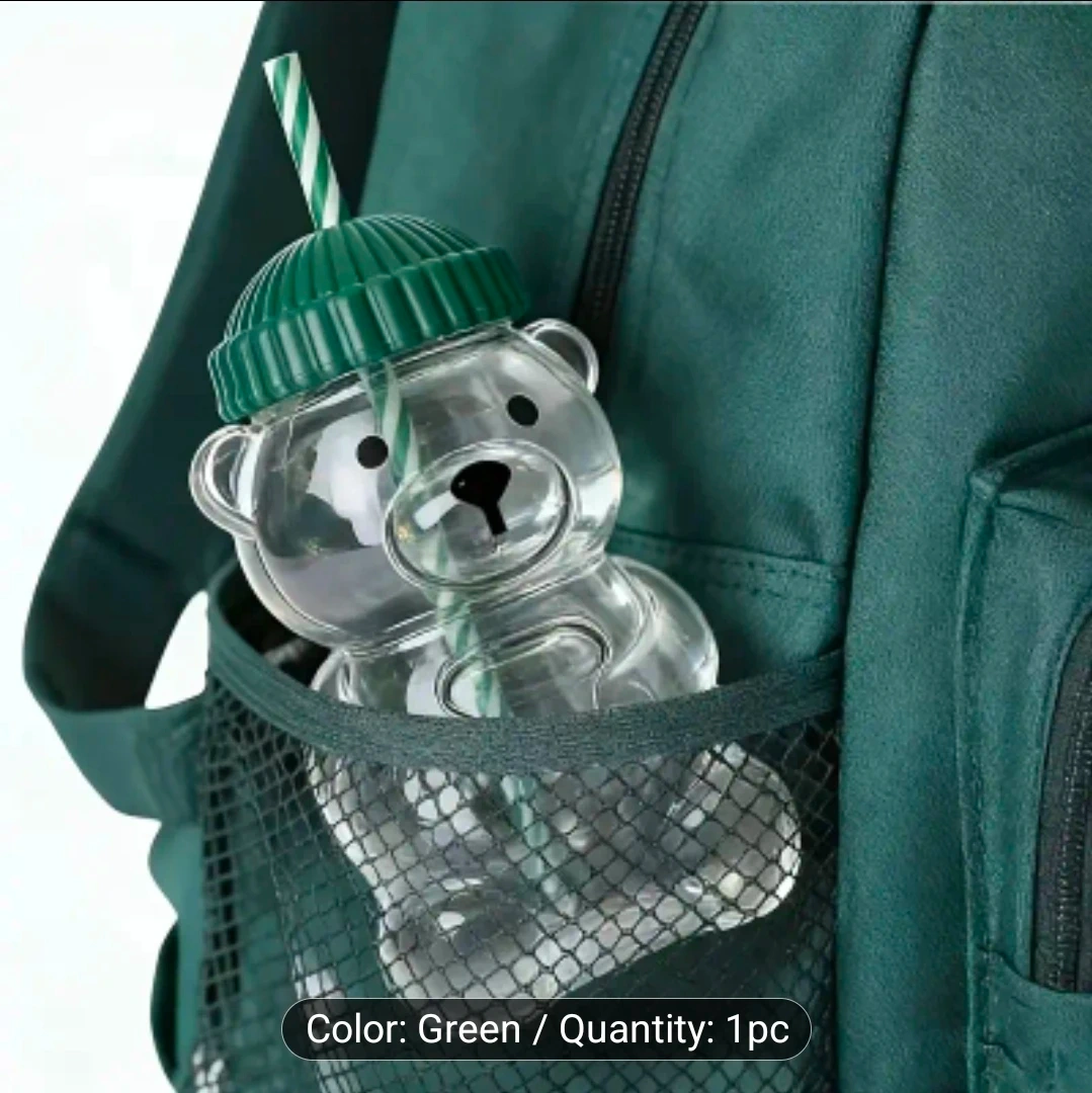 Super cute bear-shaped water bottle Glass with a green lid and straw! Perfect for anyone who loves a fun way to stay hydrated. The bottle is clear so you can easily see how much water you've had. Great for school, work, or just hanging out