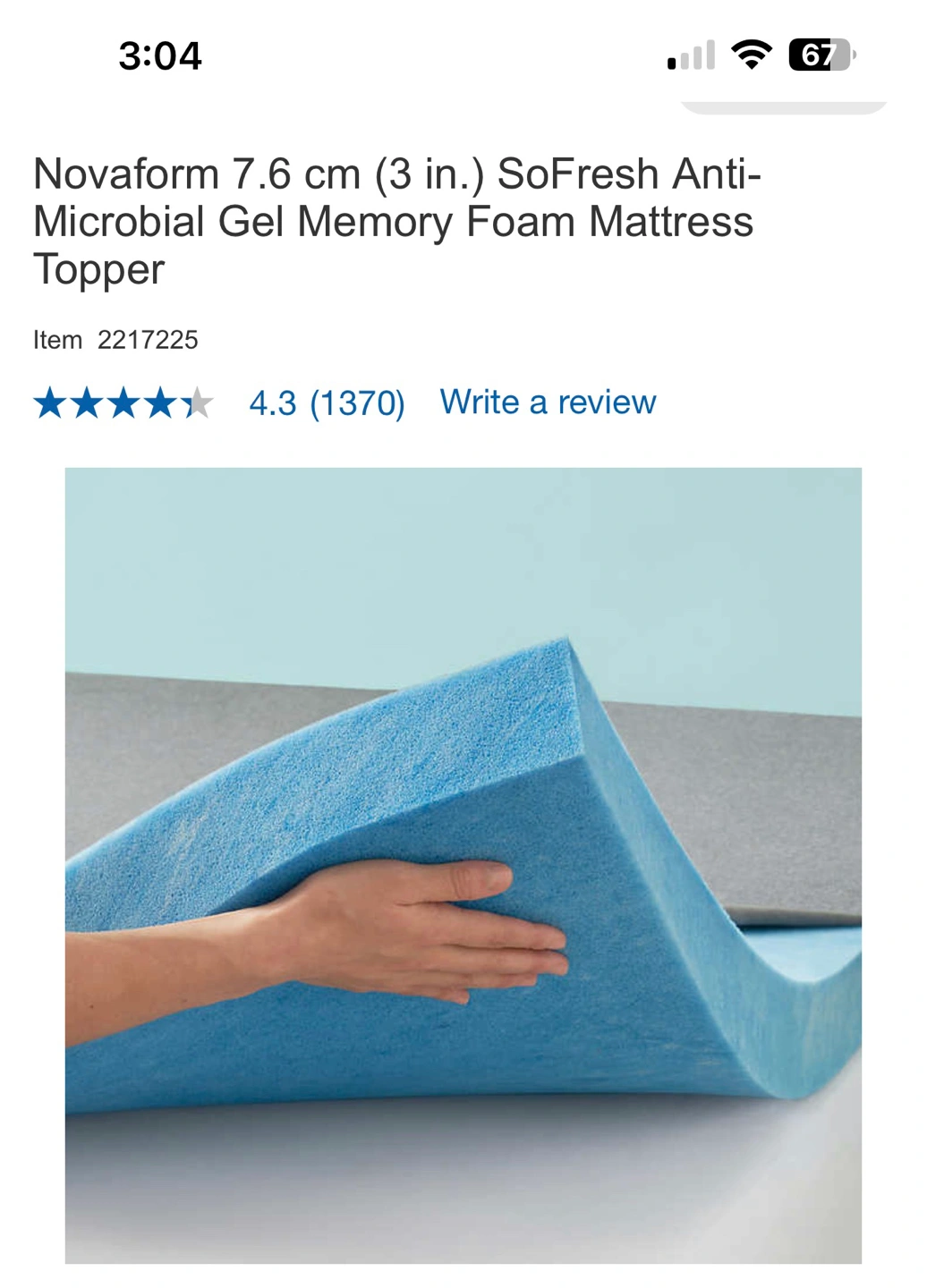 Novaform Mattress topper - antimicrobial Gel Memory Foam King size