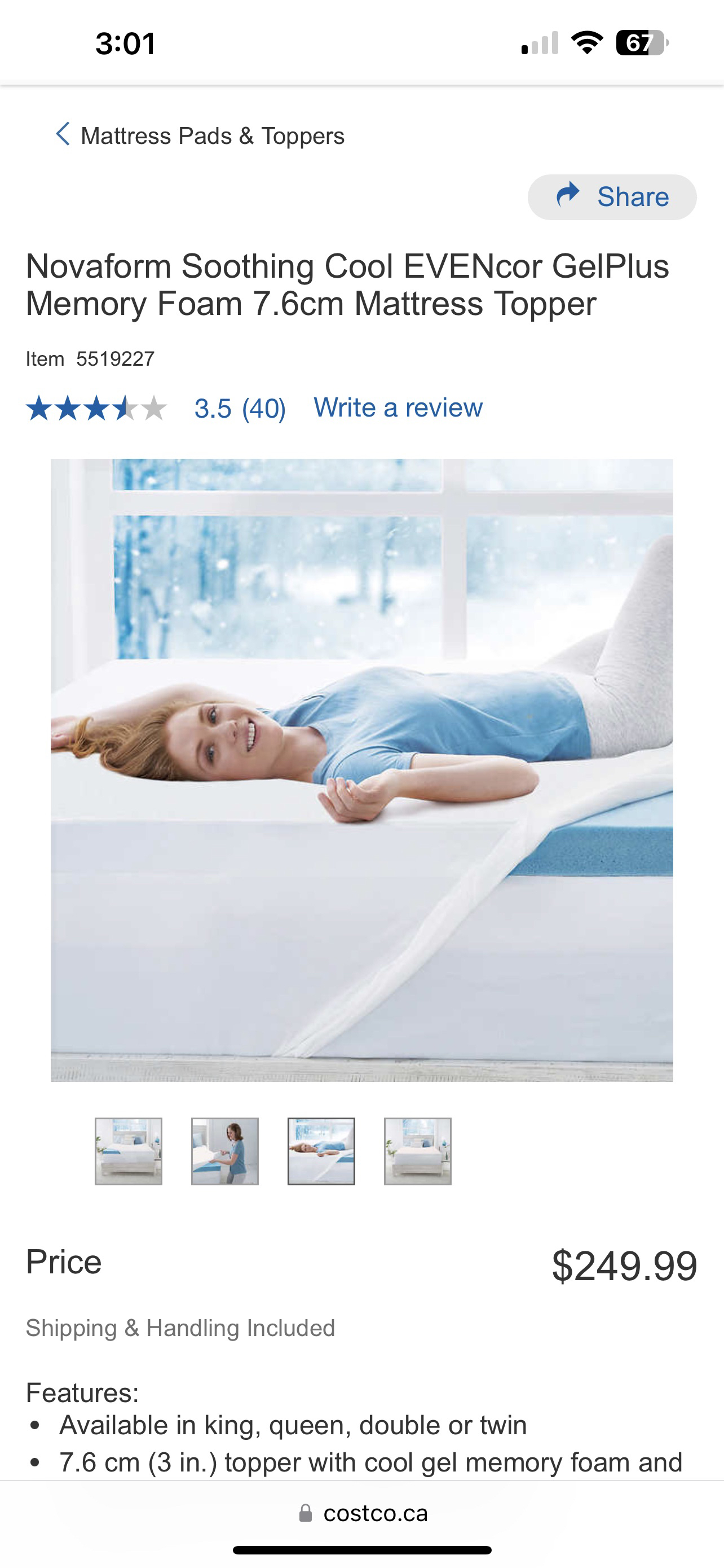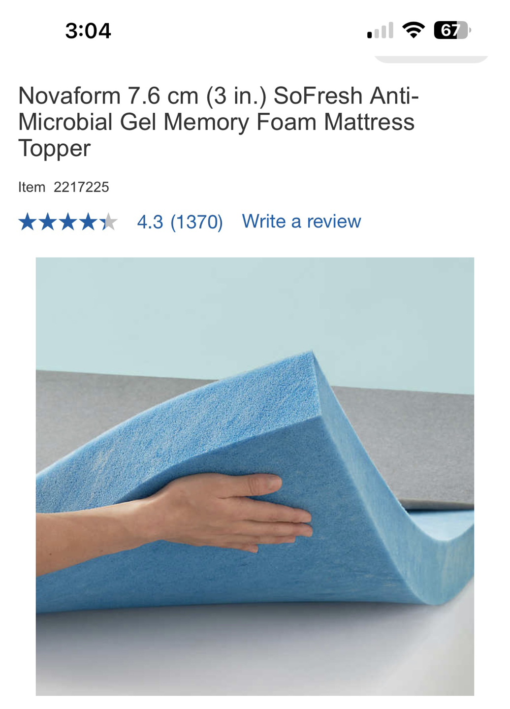 Novaform Mattress topper - antimicrobial Gel Memory Foam King size