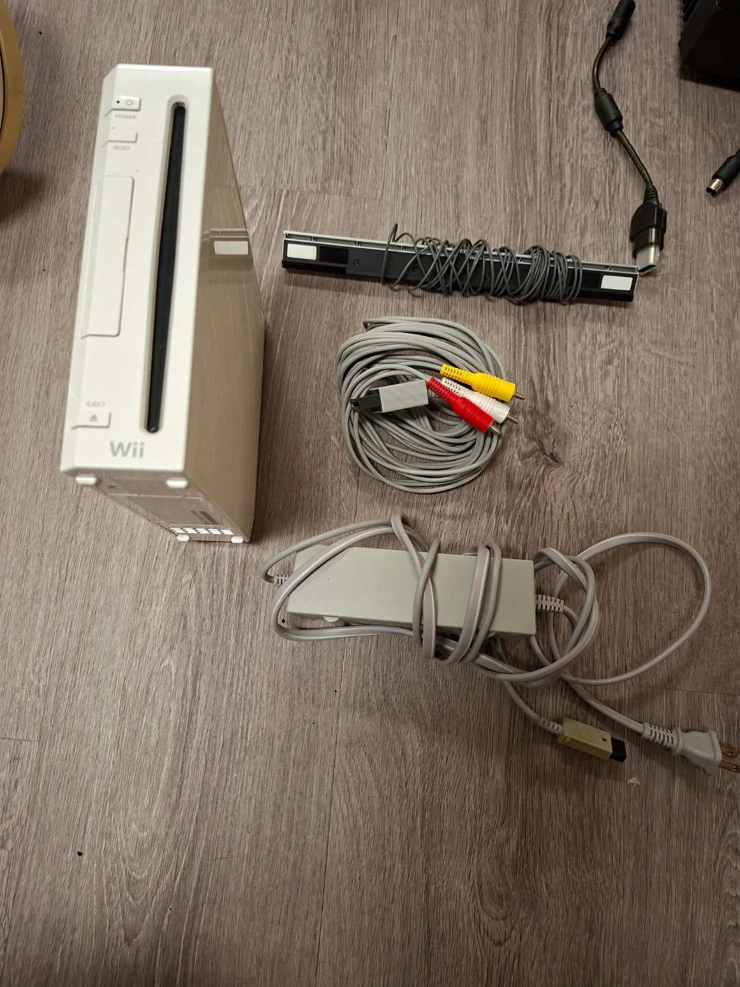 Used for lesd than a month. Complete Nintendo Wii console bundle including the console, controllers, and multiple games like Rock Band and Guitar Hero. It also includes a drum set and pedal for an immersive gaming experience. This setup is ready for hours of fun!