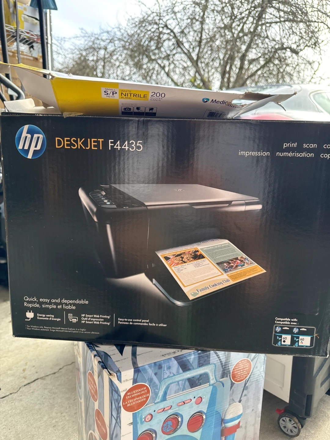 HP DeskJet F4435 all-in-one printer. It prints, scans, and copies documents. Get started right away with simple, straightforward setup. This unit is ENERGY STAR qualified.