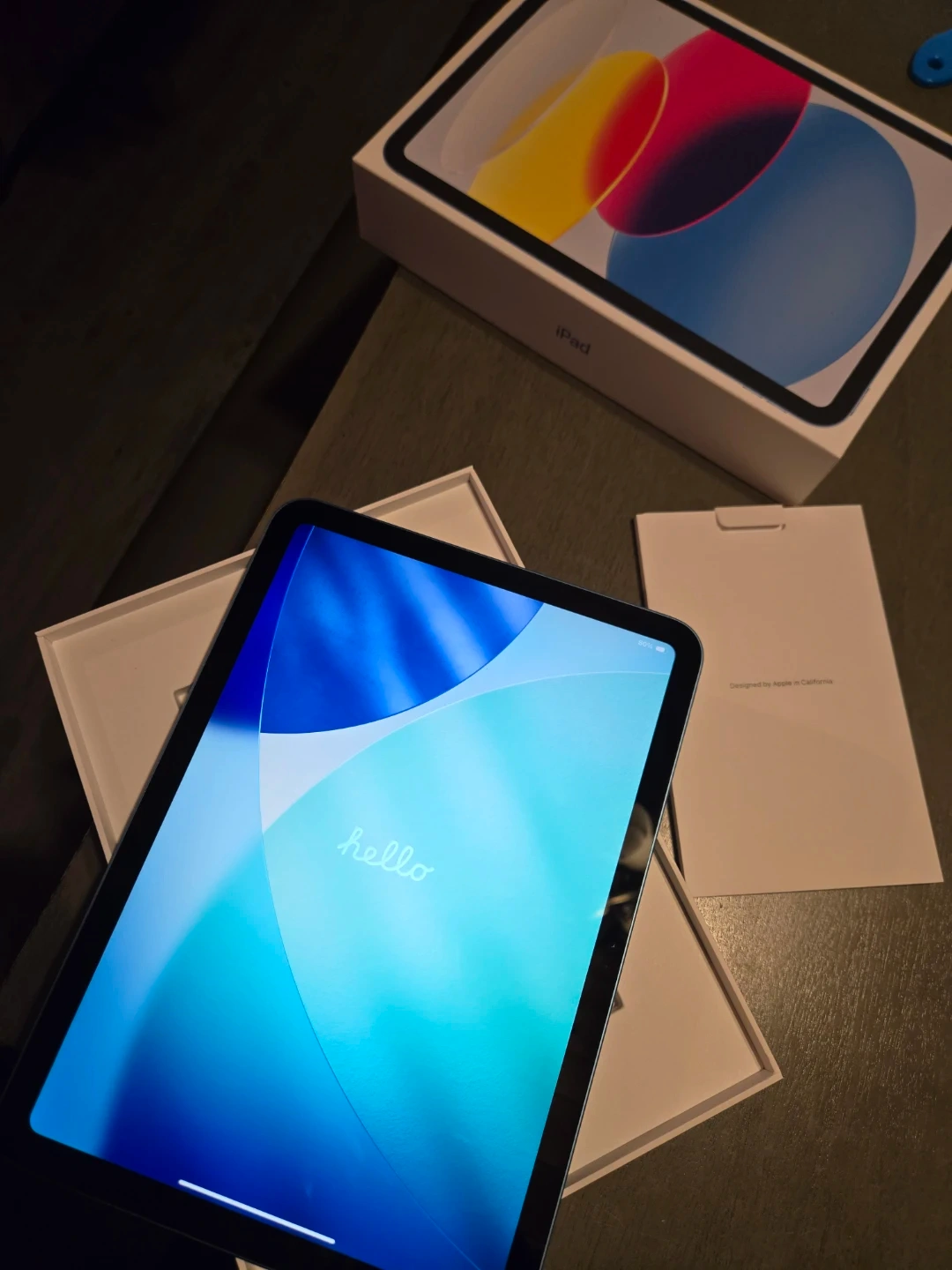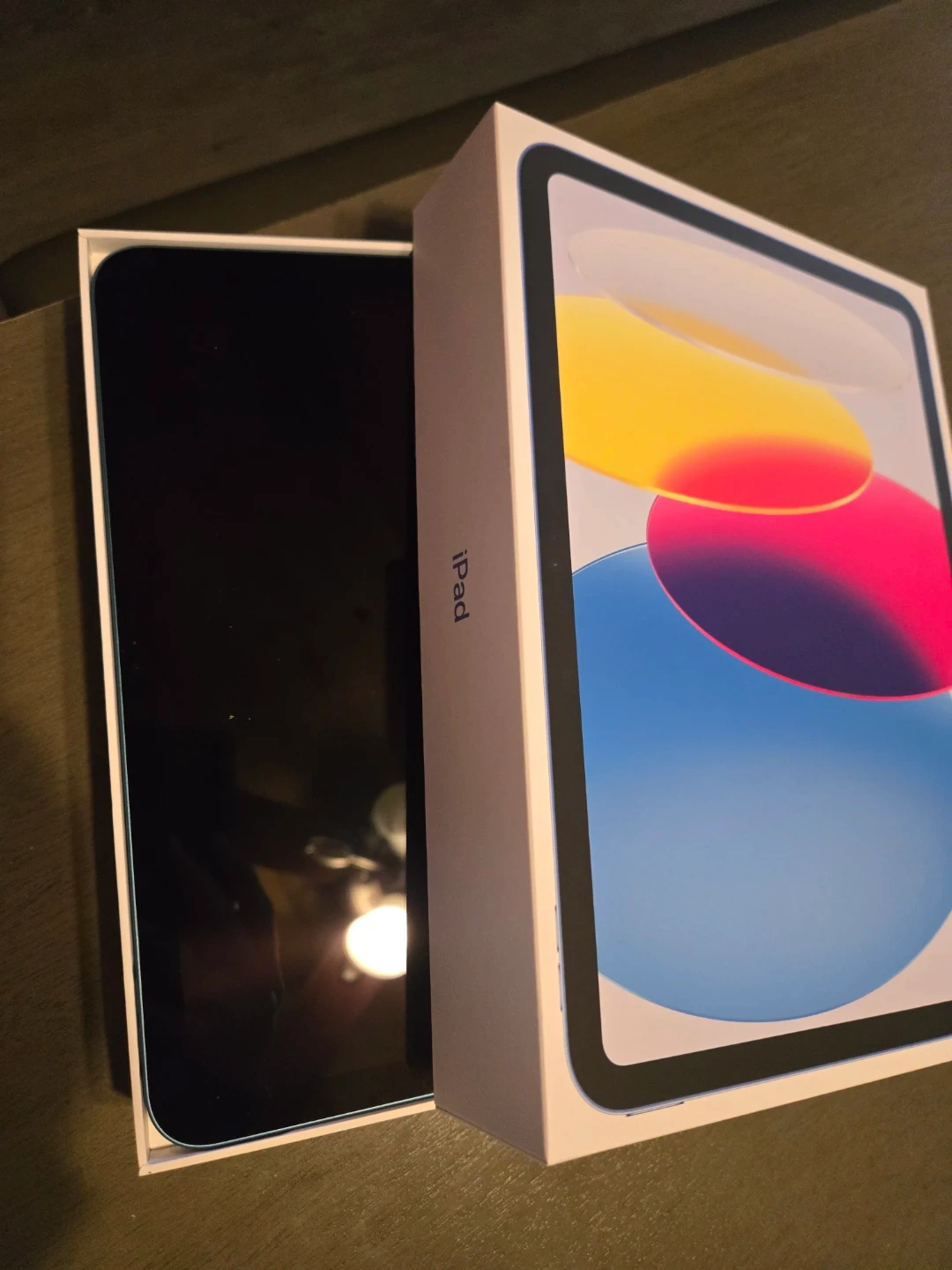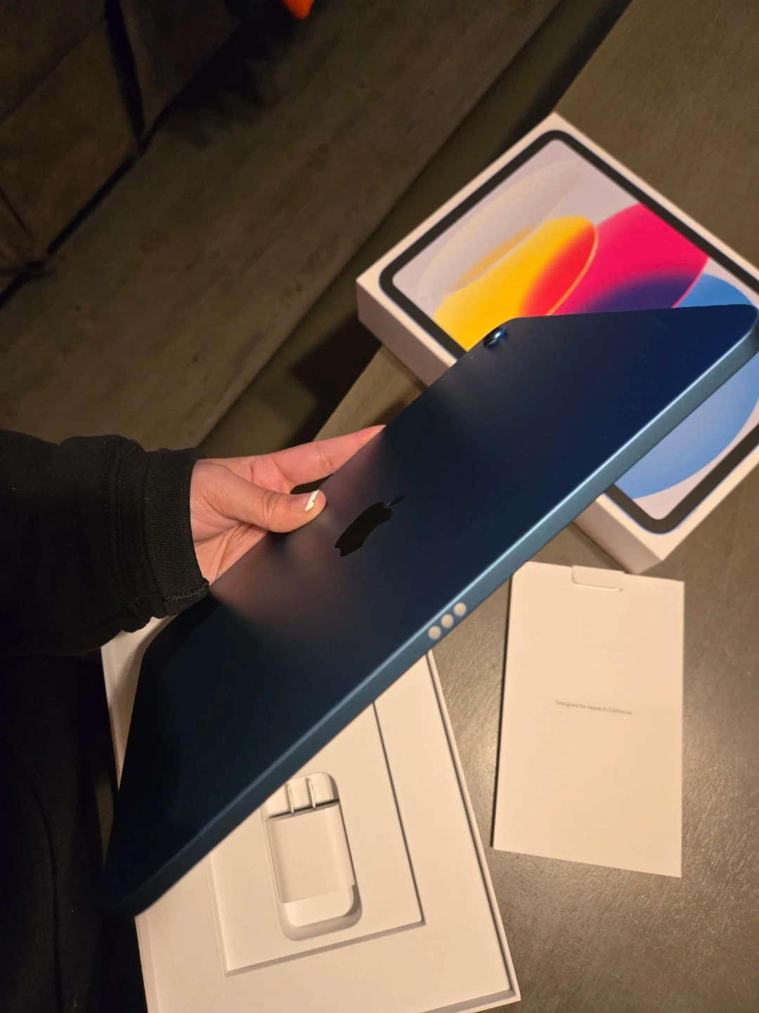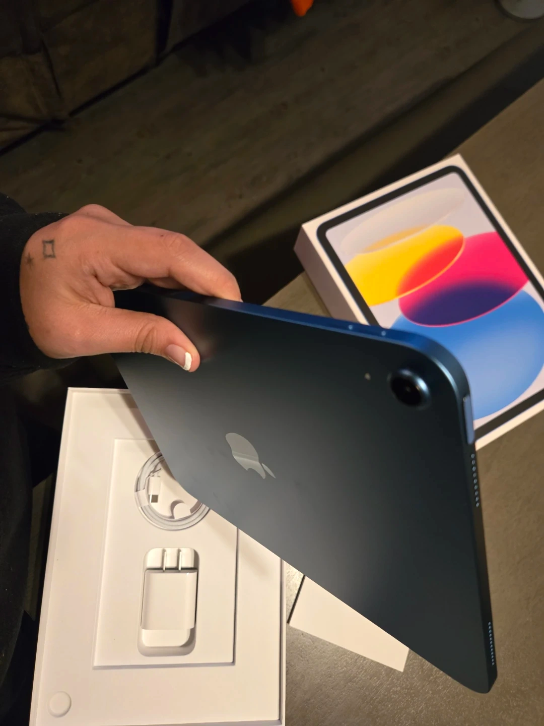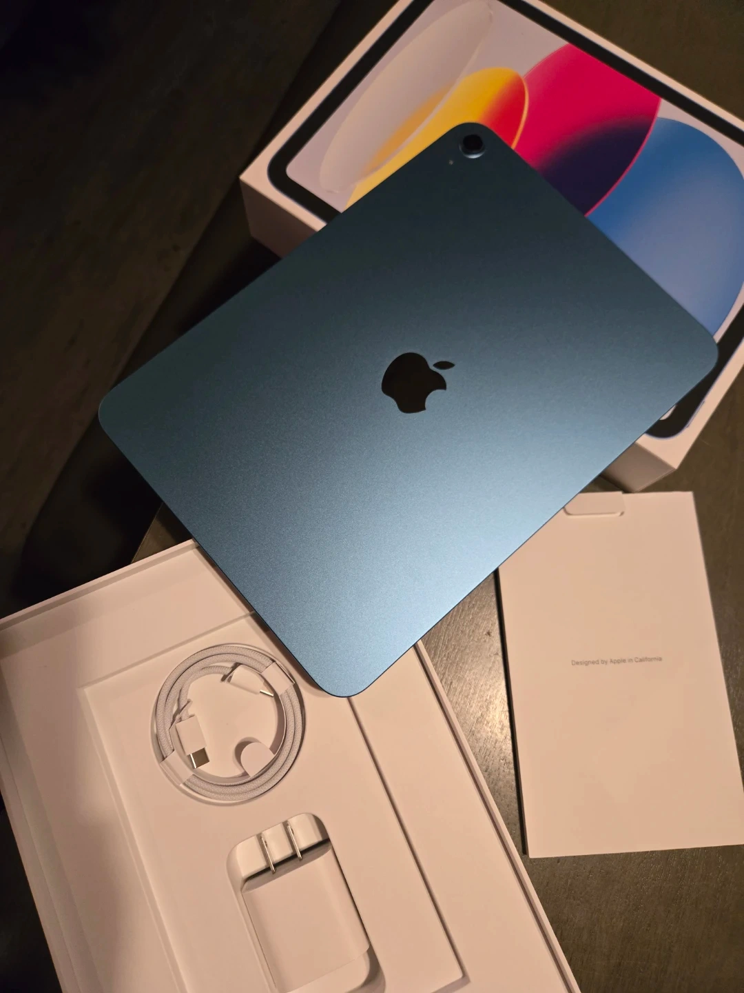 This is a blue Apple iPad A16 Chip Wifi with 128Gs It's in its original box and includes the original charger and USB-C cable.