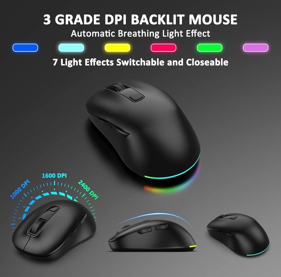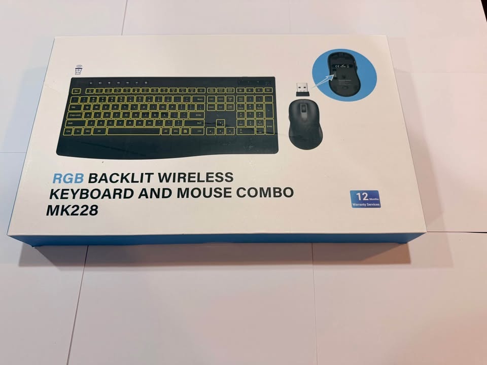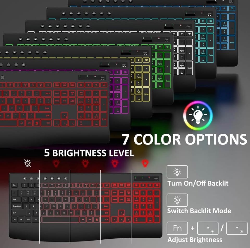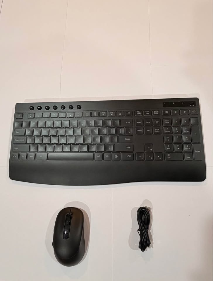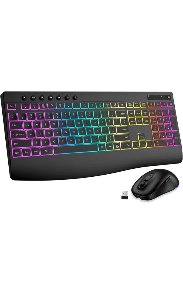 Brand new, rechargeable keyboard and mouse with 9 backlight modes and wrist rest. Quiet, comfortable, and easy plug & play. Works with PC, Mac, and laptop.