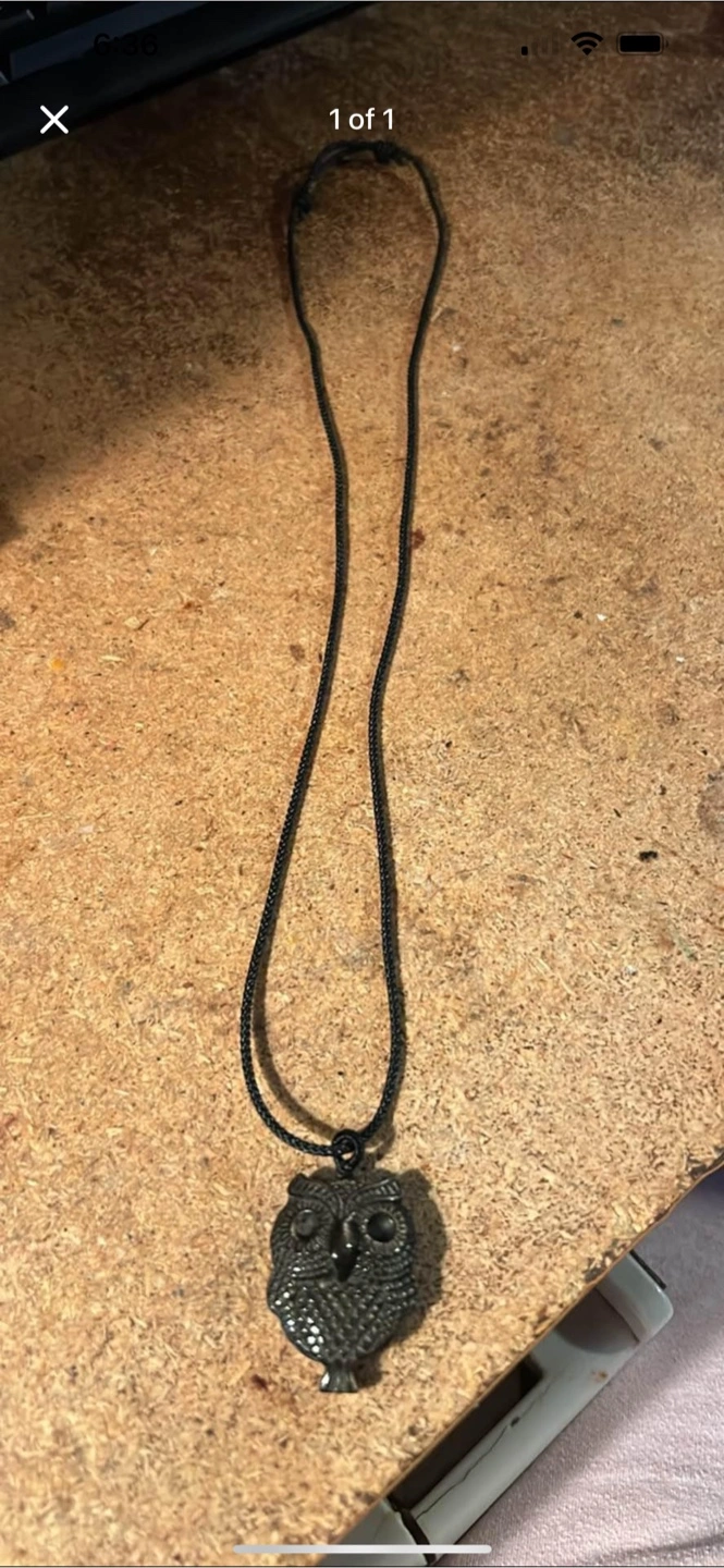 Cute owl pendant necklace in black! The chain is a simple black cord. The owl pendant has a textured design. Perfect for adding a bit of personality to any outfit