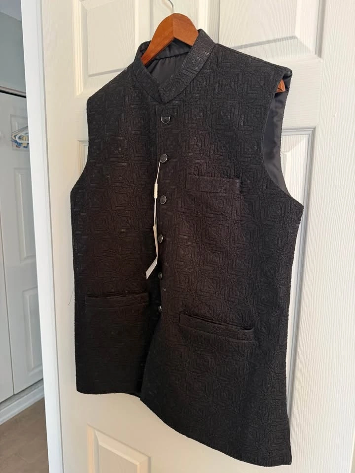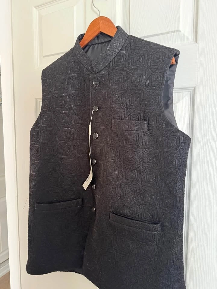 Selling a men's Indian waistcoat, ideal for a wedding or party. This is the latest one and it is the wrong size. I am a large size, but it's a little tight on me. Perfect for a medium build. Price is $70.