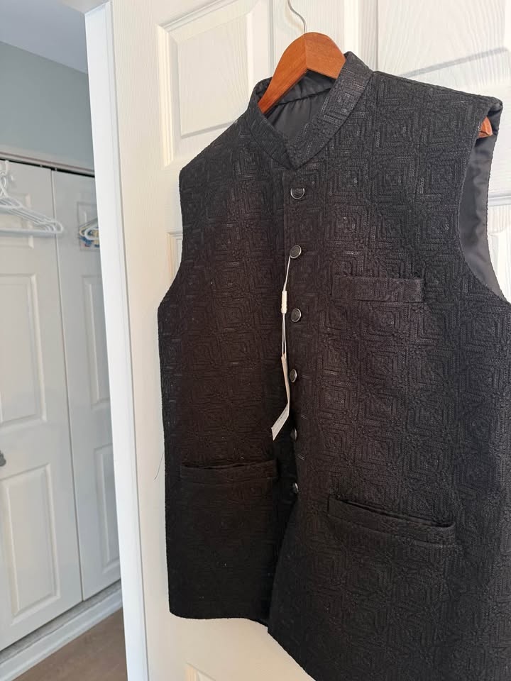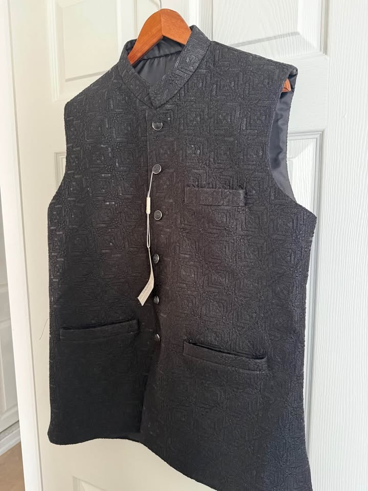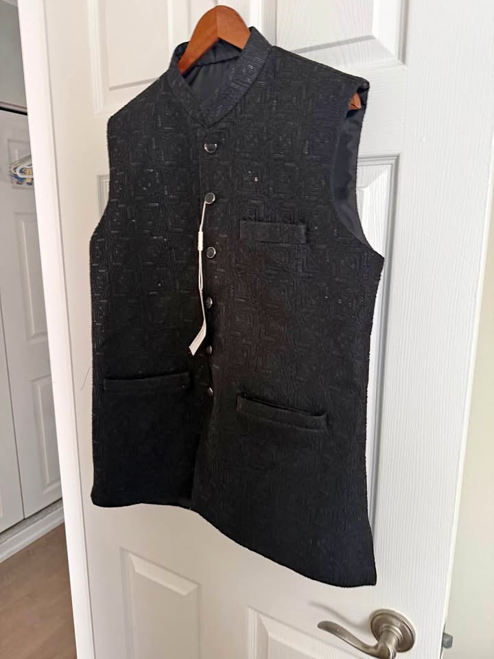 Selling a men's Indian waistcoat, ideal for a wedding or party. This is the latest one and it is the wrong size. I am a large size, but it's a little tight on me. Perfect for a medium build. Price is $70.