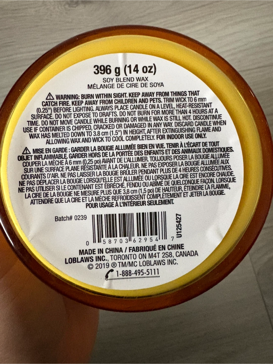 The candle is 396g (14 oz) and intended for indoor use only.