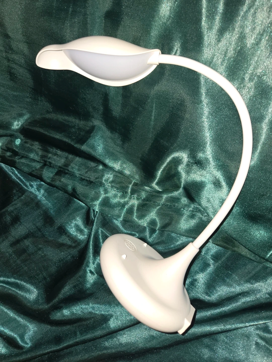 This white LED desk lamp features a flexible gooseneck design and USB charging. ✨️🛋