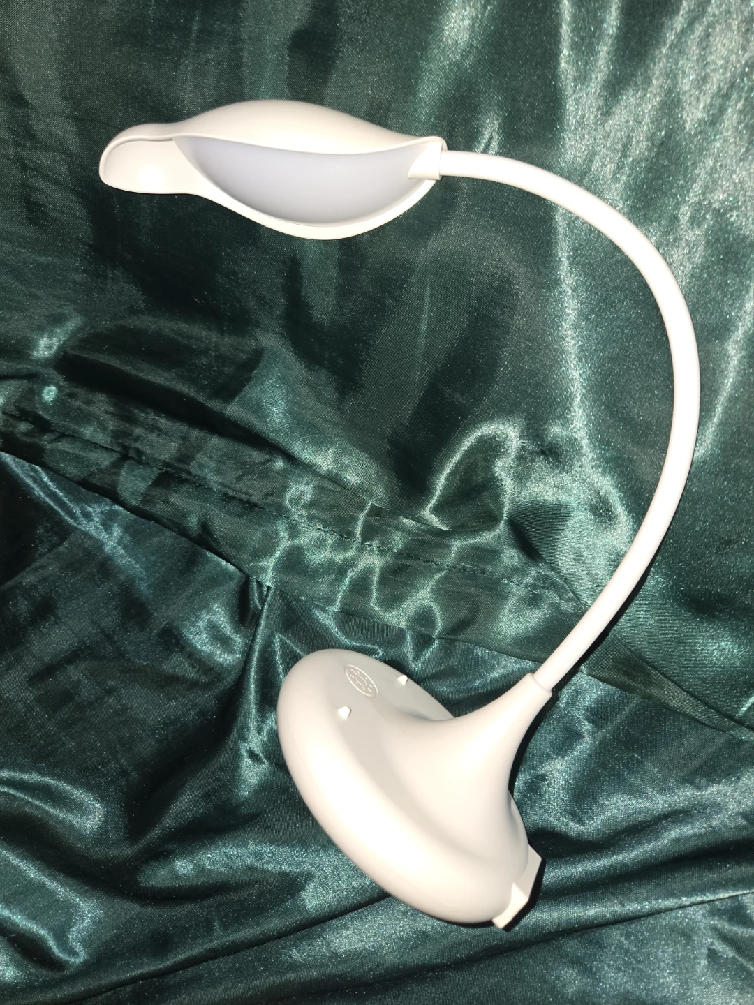 This white LED desk lamp features a flexible gooseneck design and USB charging. ✨️🛋