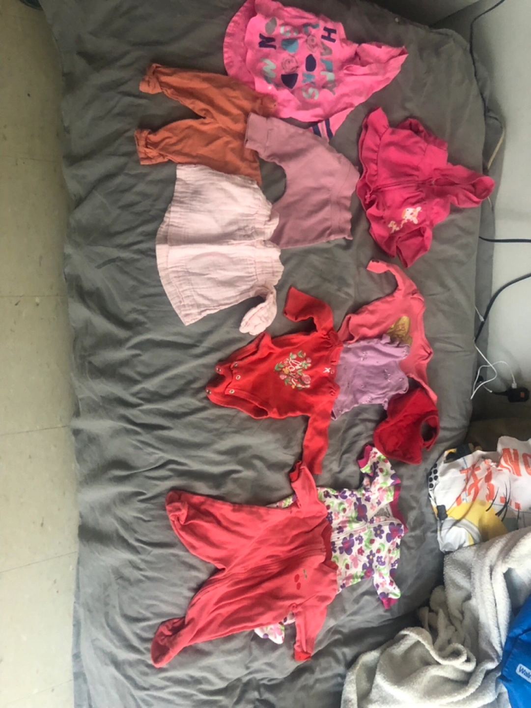 Bundle of adorable baby girl clothes. Sizes newborn to 3 months. Variety of colours and styles. Includes bodysuits, leggings, and dresses. Great for a new parent or to add to your collection.