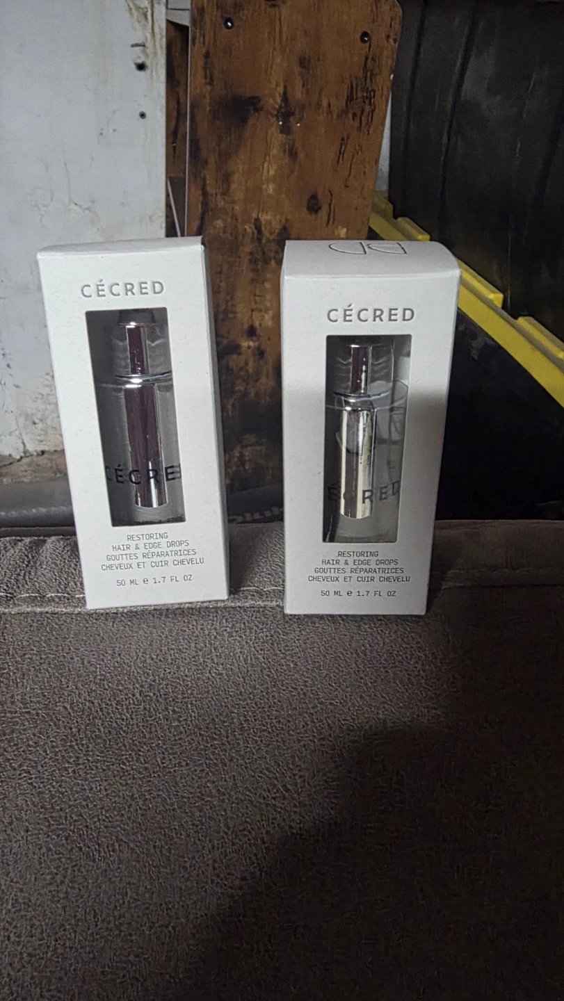 These are two bottles of Cécred Restoring Hair & Edge Drops. Each bottle is 50 mL (1.7 FL OZ). They're designed for hair and edges.