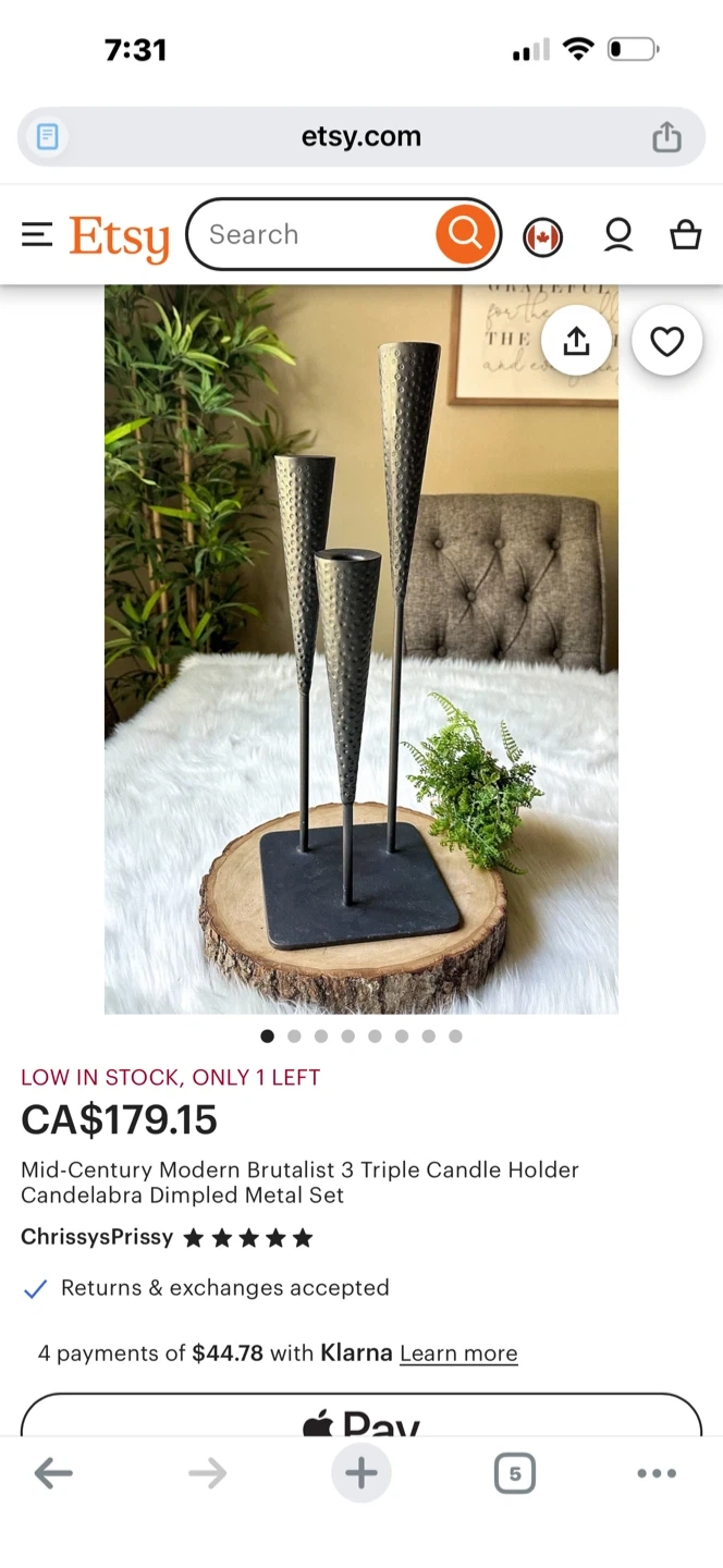 Mid Century Modern Brutalist 3 Candleholder Iron Candelabra