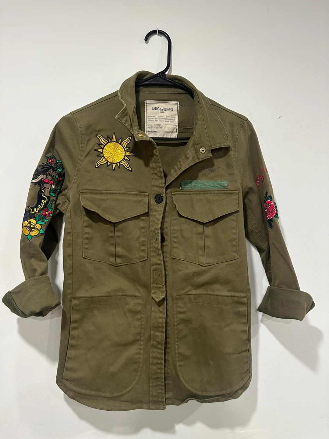 This Zadig & Voltaire jacket features unique embroidery details. It's a stylish and eye-catching piece for your wardrobe! The jacket is in great condition and ready for a new owner.