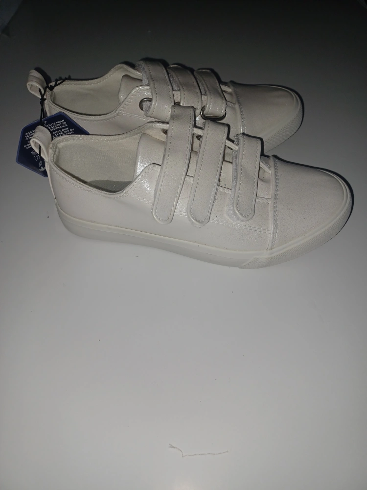 These Bella Outfitters sneakers are in new condition and ready for a new home! They are a crisp white colour and size 3 Perfect for school.