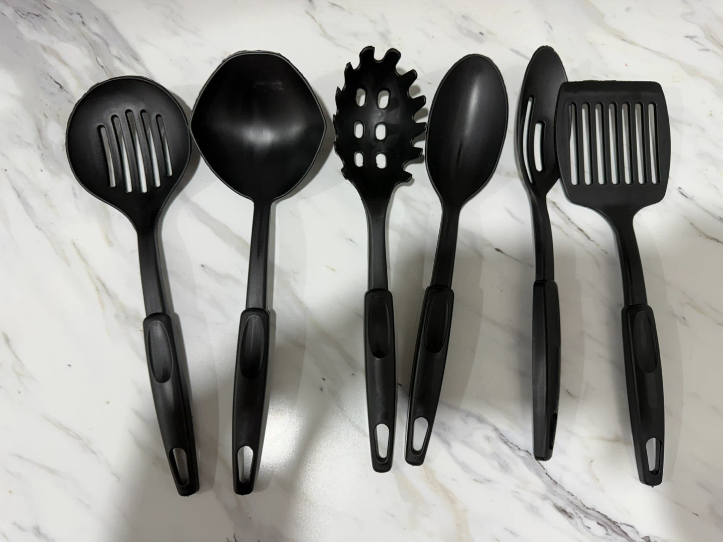 Small 6-Piece Black Plastic Kitchen Utensil Set
