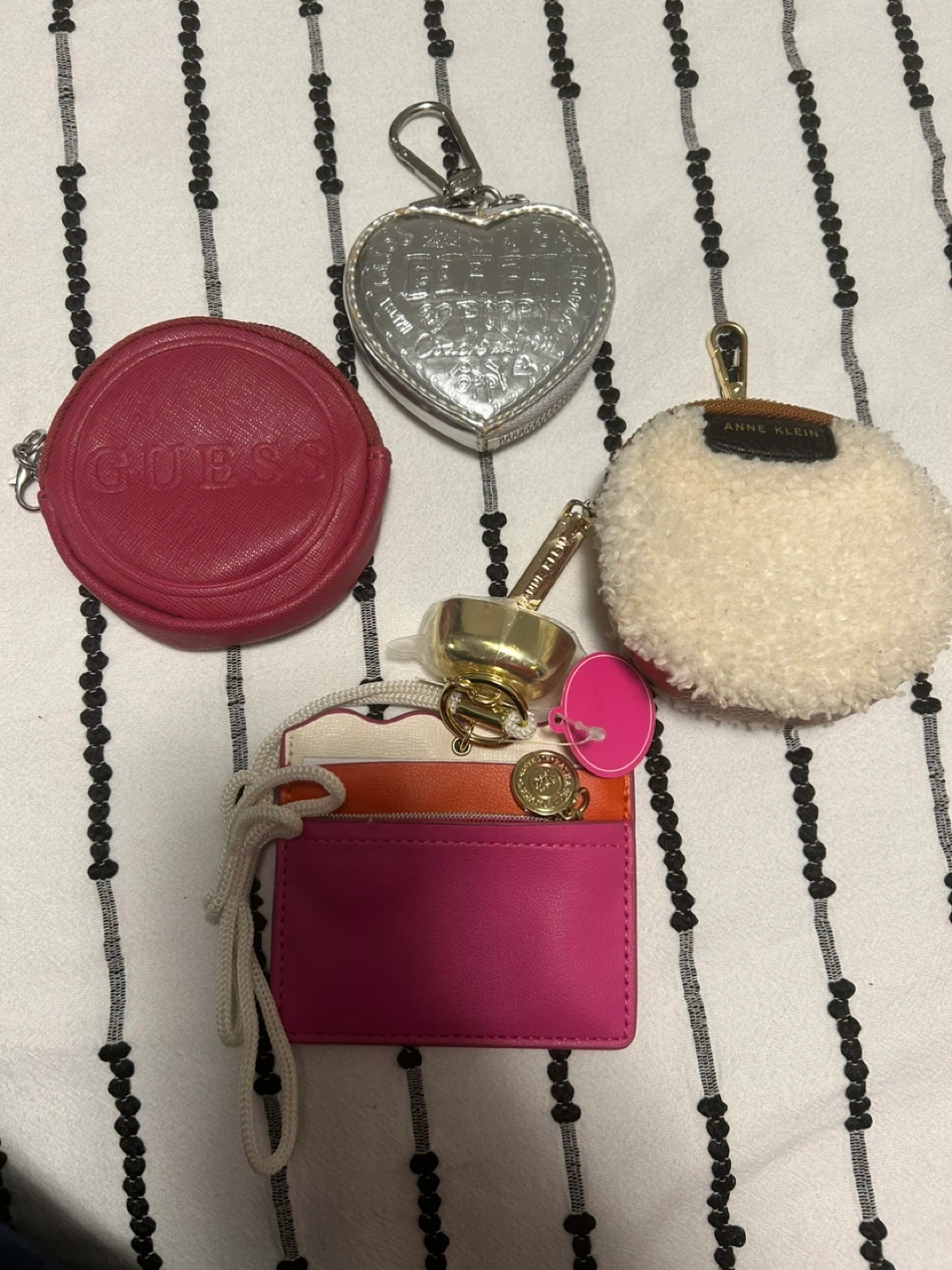 Cute little round coin pouch from Guess. It's red and features the Guess logo. Perfect for keeping loose change handy!