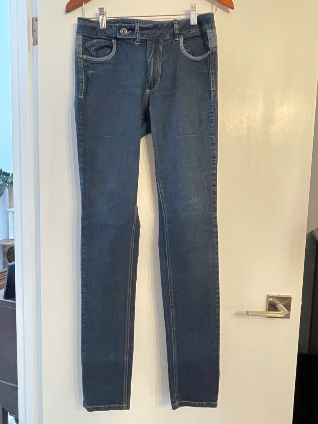 Blue denim jeans made in Colombia. Features a leather brand patch on the back. These jeans are perfect for everyday wear.