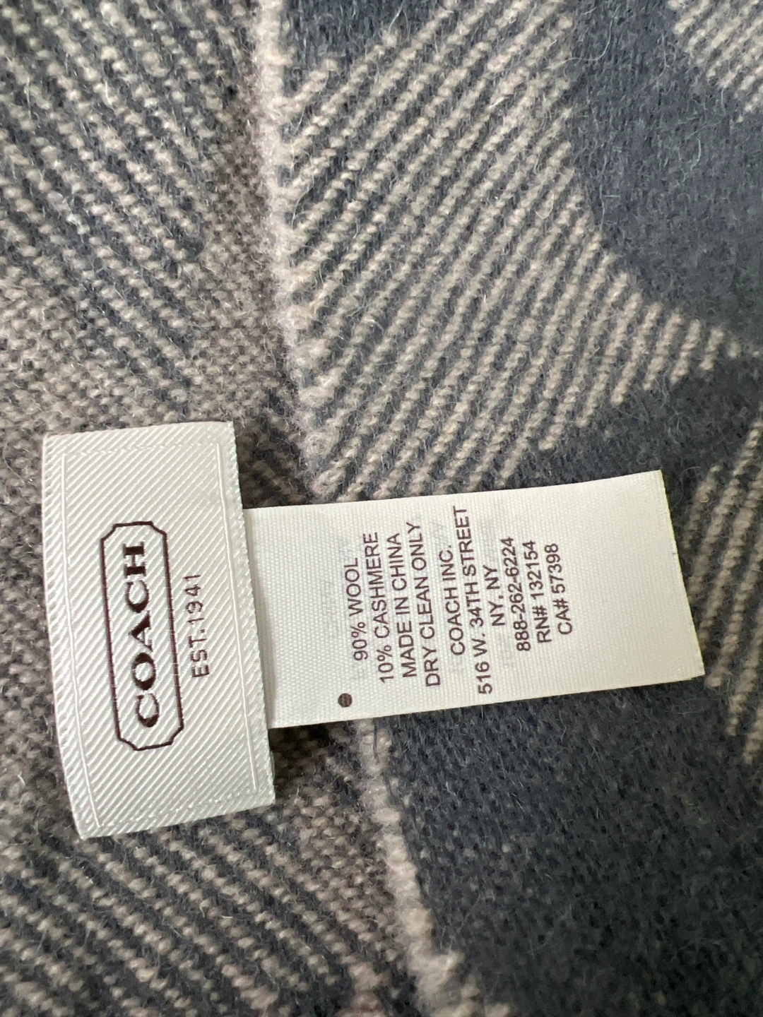 Coach scarf made from a blend of 90% wool and 10% cashmere. Features the iconic Coach signature pattern. Perfect for adding a touch of warmth and style to any winter outfit!